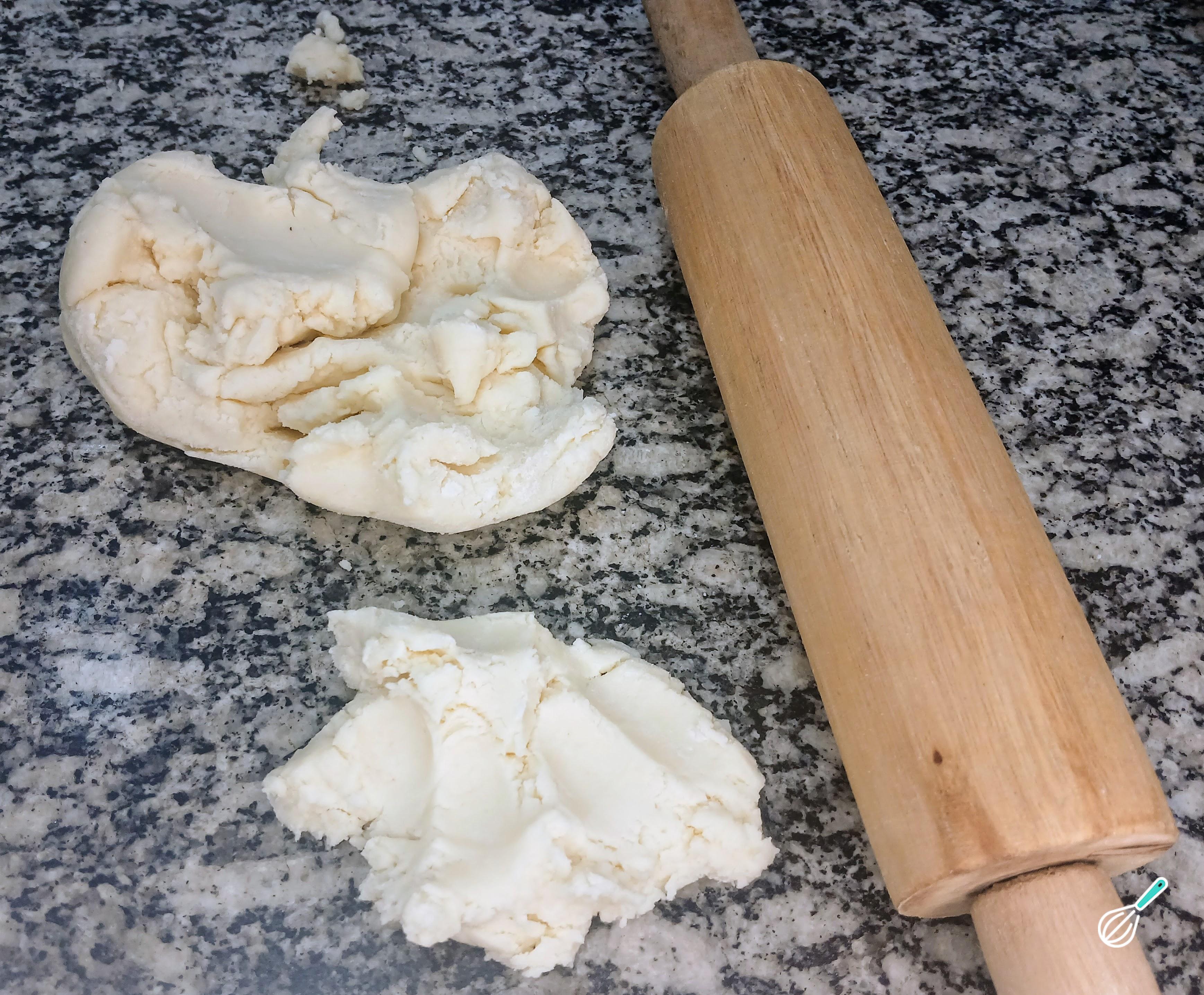 Dica: Não é necessário colocar farinha sobre a bancada pois o biscoito já contém gordura.