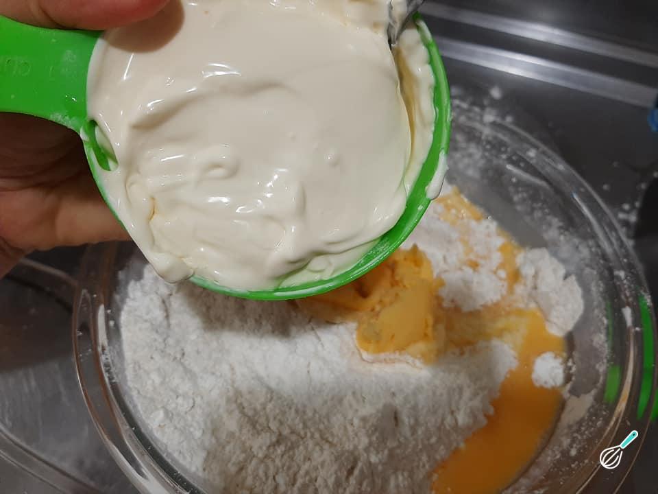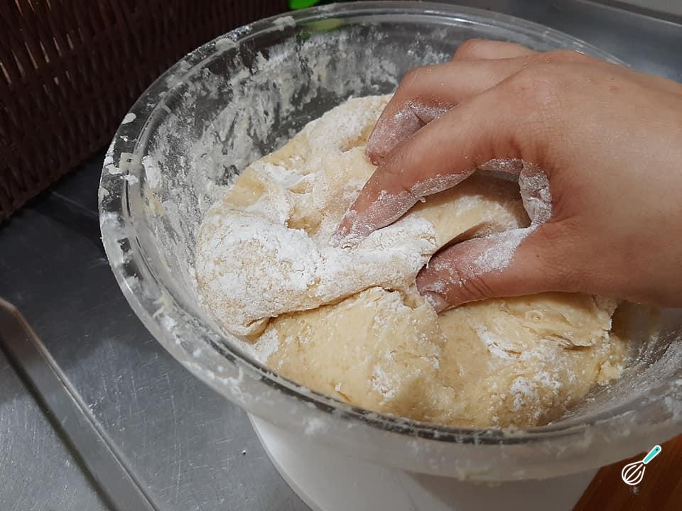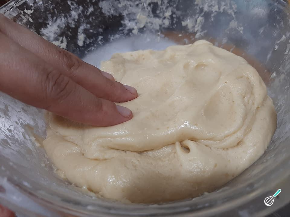 Dica: Reserve o restante da farinha de trigo e do amido de milho para ir colocando aos poucos até a massa chegar no ponto correto.