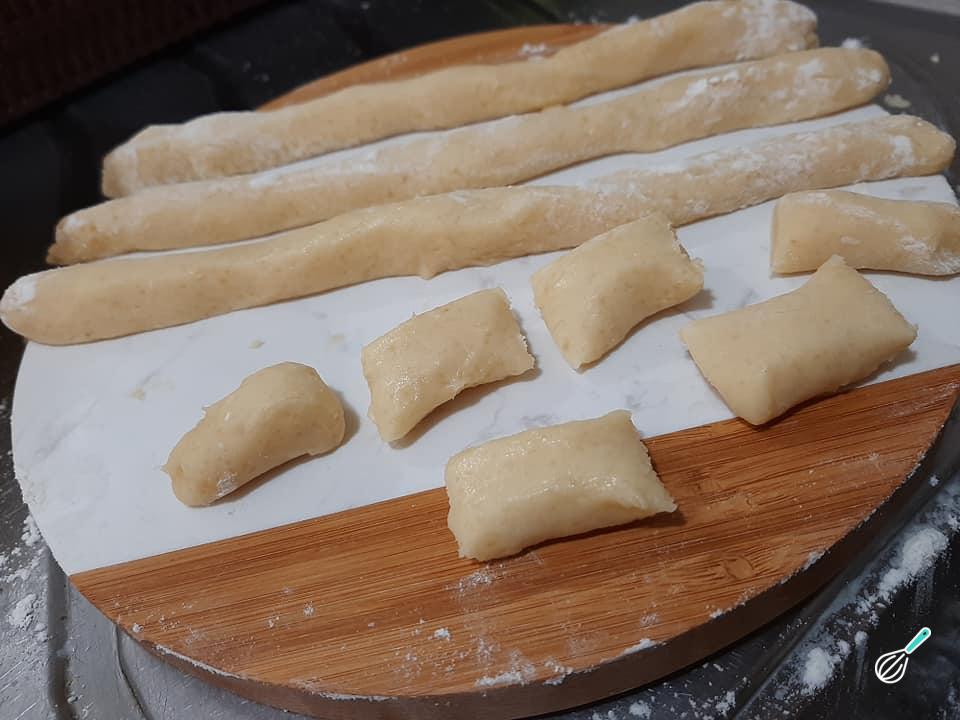 Faça rolinhos de massa e corte pedaços do mesmo tamanho.
