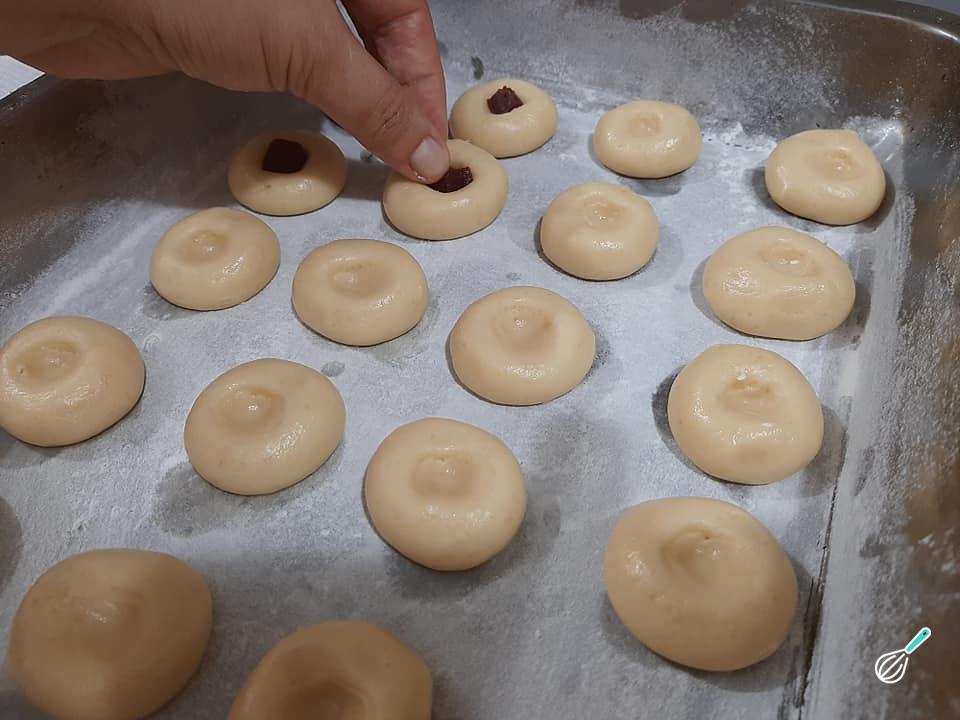 Dica: Se quiser acrescentar goiabada aos biscoitos, basta fazer um furo com o dedo no centro de cada bolinha e acrescentar um pedacinho de goiabada.