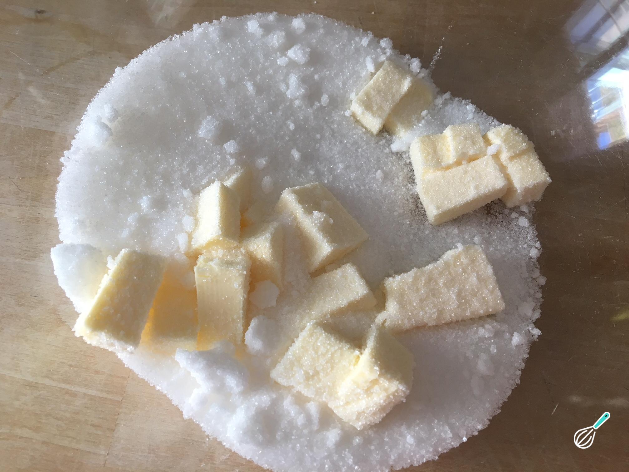 Em seguida misture a manteiga com o açúcar, de preferência na batedeira, até obter um creme.
