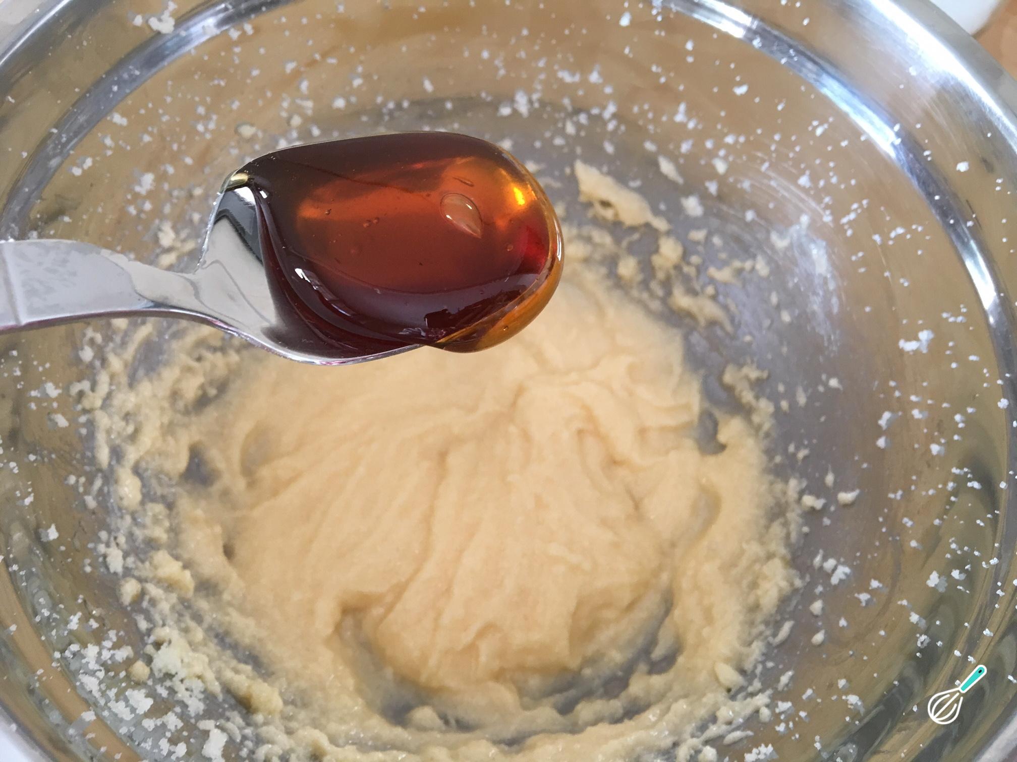 Junte o ovo e a baunilha e continue batendo, até incorporar. Depois junte o mel e volte a bater.