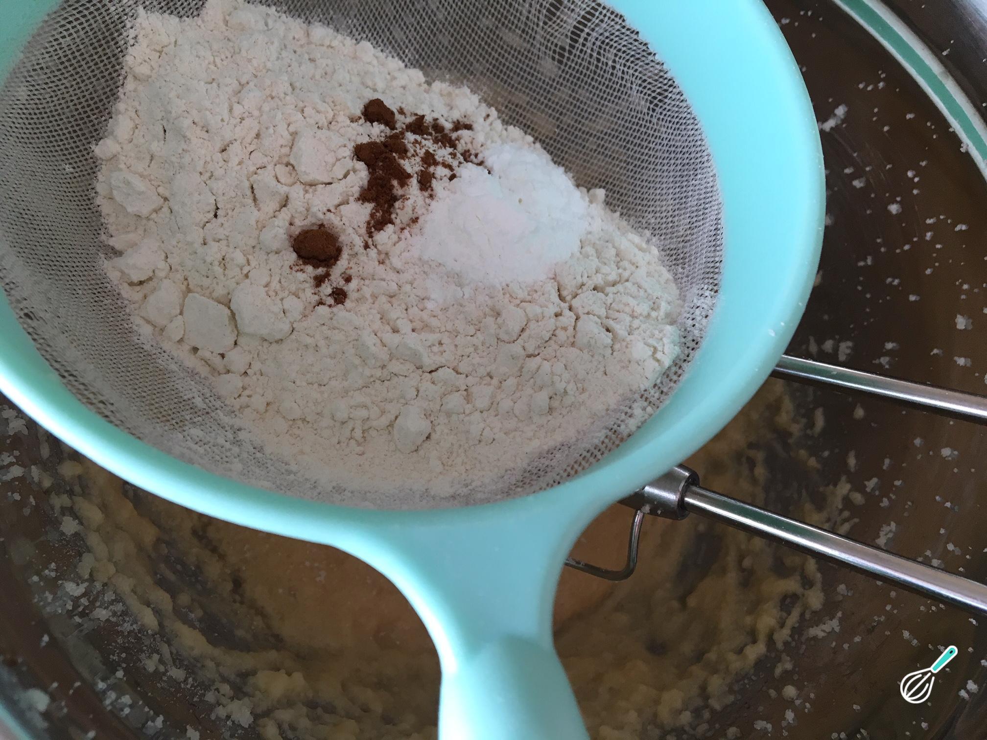 Finalmente acrescente os ingredientes secos peneirados: a farinha, o sal, a canela e o fermento. Misture com a batedeira e depois com as mãos até obter uma massa lisa e compacta.