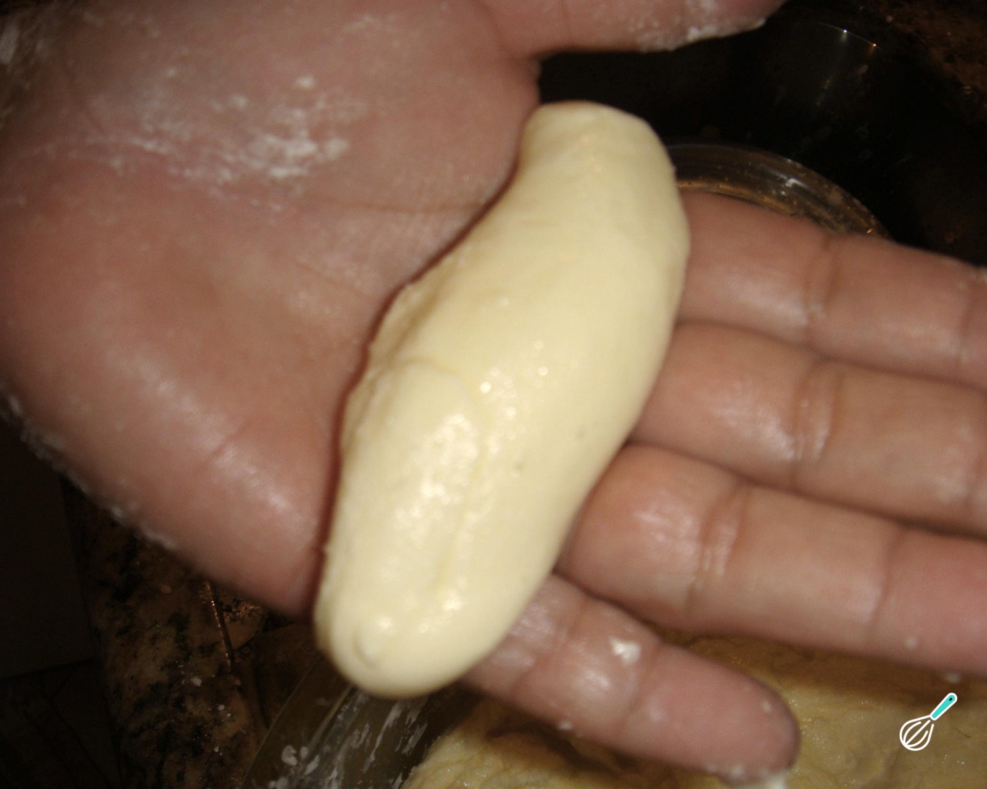 Dica: Independentemente do método usado, estes biscoitos de polvilho azedo devem ser modelados em forma de biscoito alongado, com espessura de um dedo. Deixe algum espaço entre os bolinhos na assadeira, para que não grudem enquanto assam no forno.