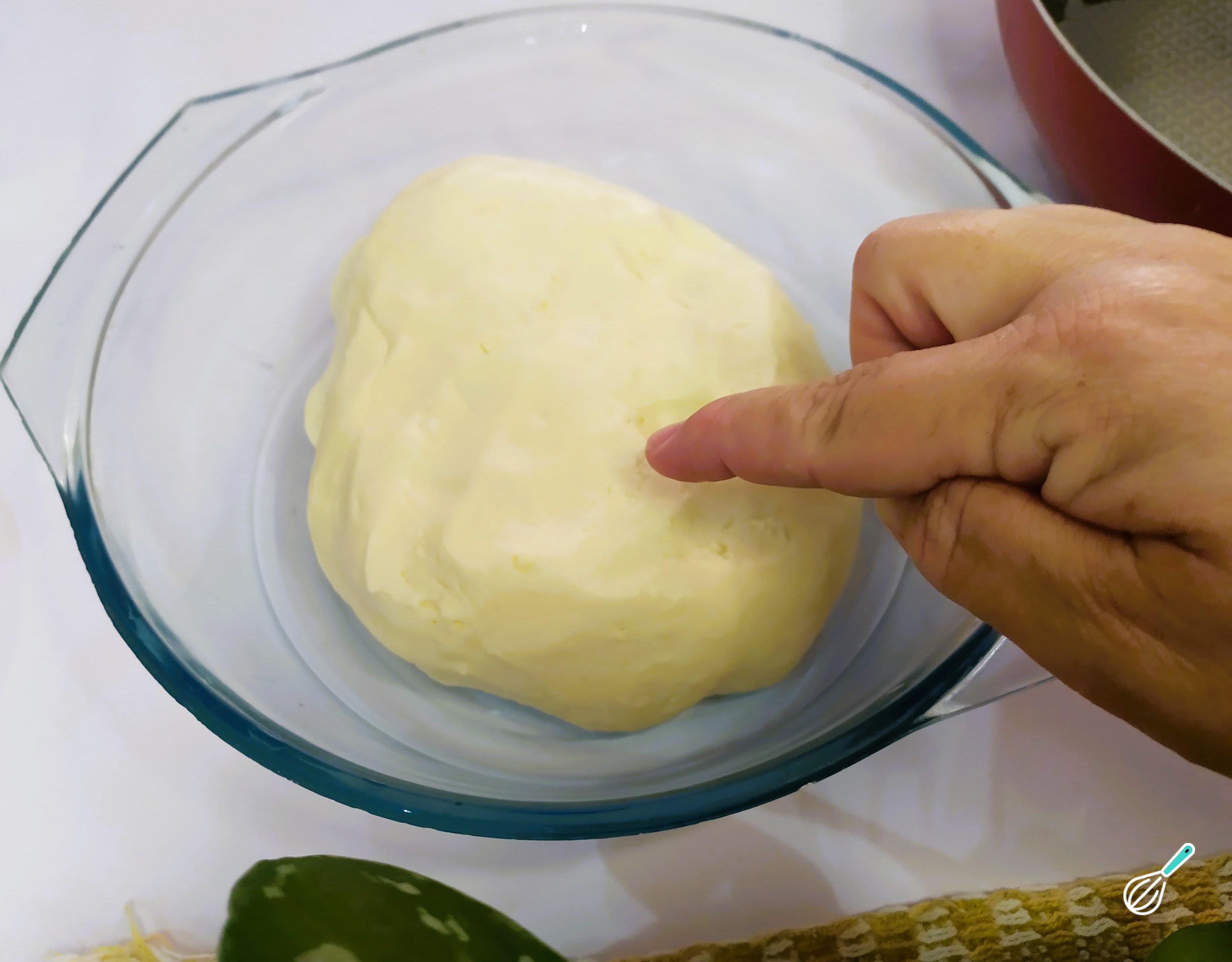 Dica: Se preciso polvilhe polvilho doce na bancada antes de sovar, para a massa não grudar.