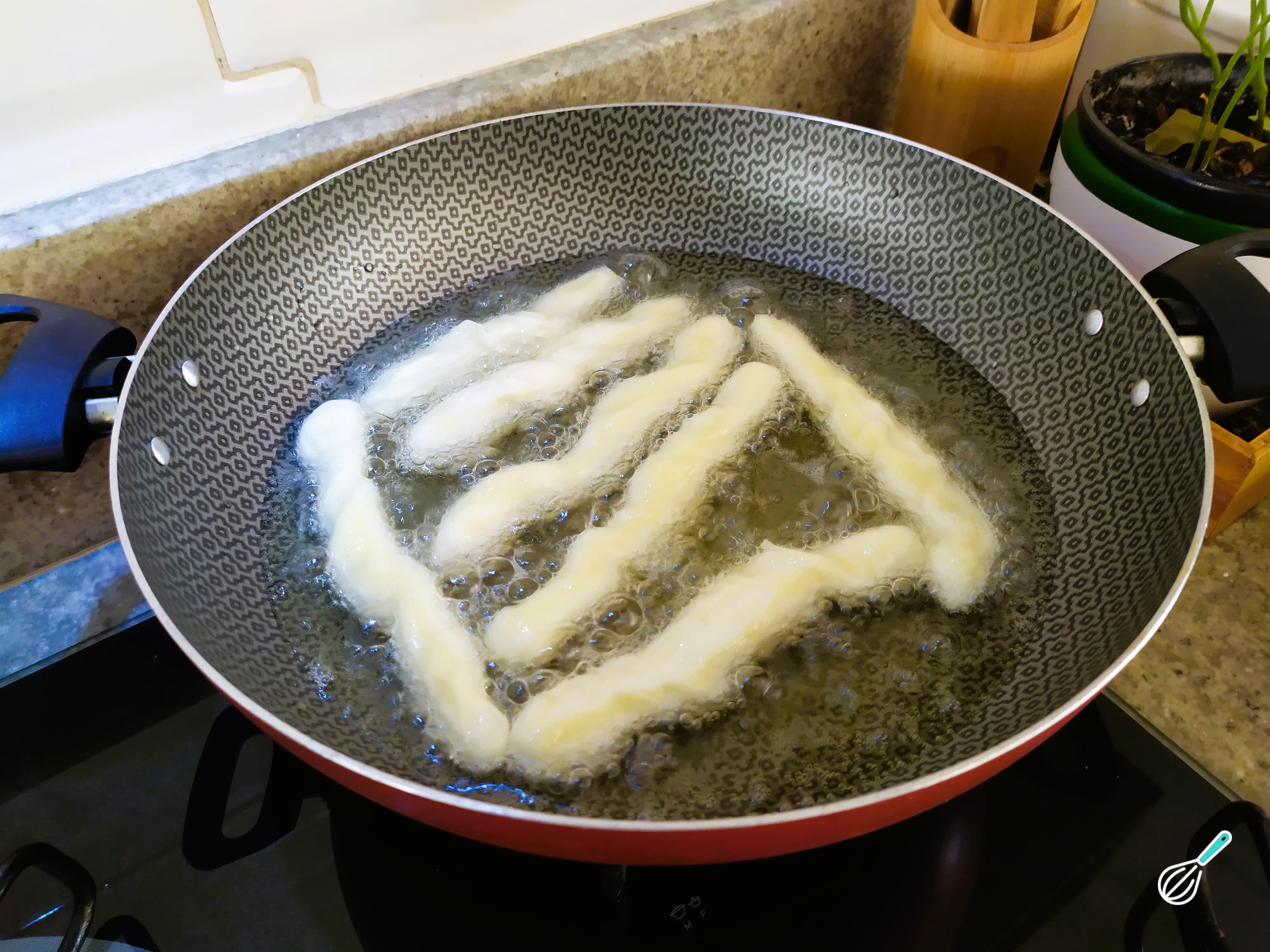 Dica: Para fritar os próximos biscoitos, espere a gordura esfriar novamente e repita todo o processo. Pode ser um pouco trabalhoso, mas vai valer a pena no final.