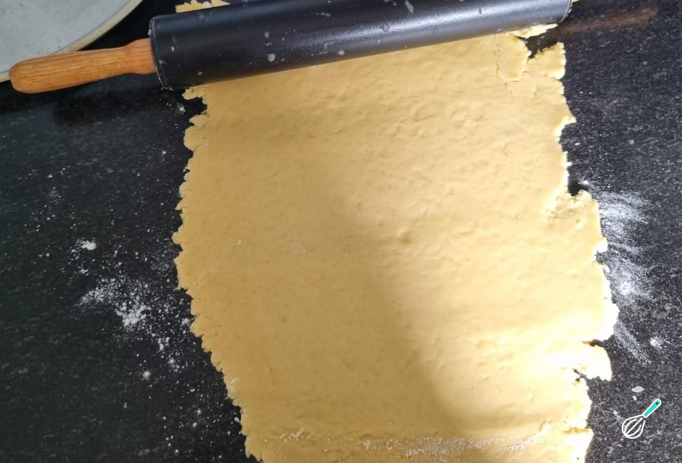 Coloque a massa numa superfície lisa e abra com a ajuda de um rolo ou uma garrafa
