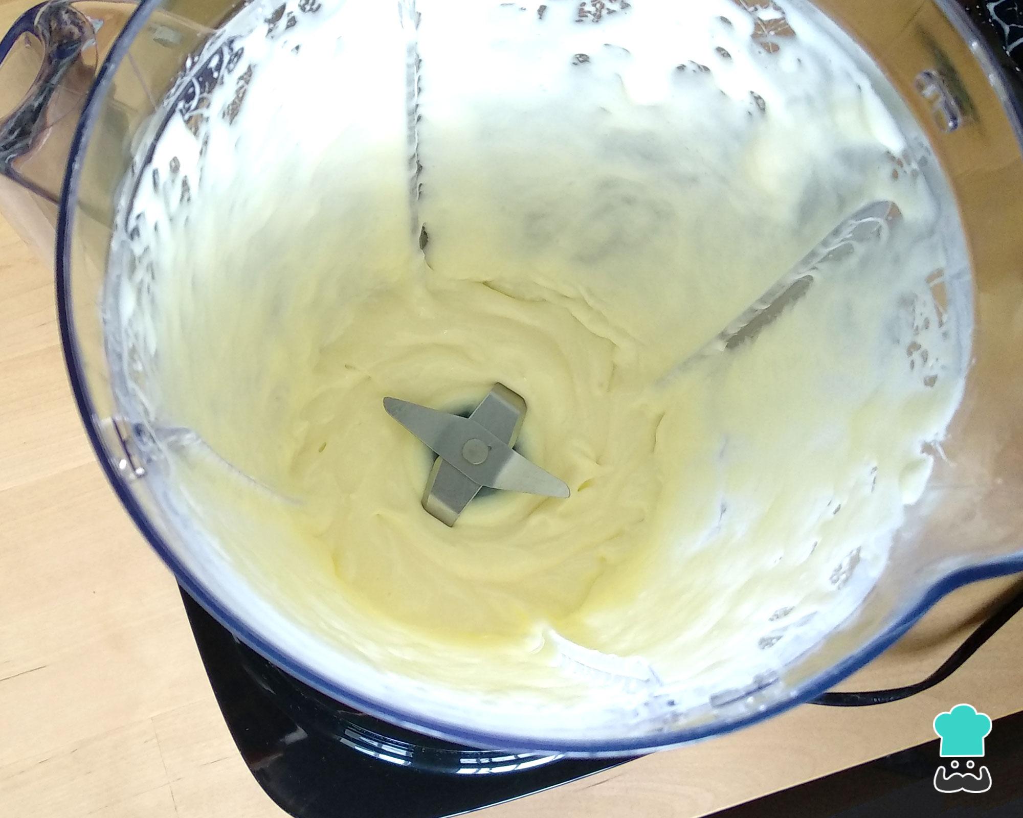No liquidificador bata o leite condensado geladinho por 4 minutos ou até dobrar de volume. Isto é necessário para que a sobremesa de leite condensado fique bem cremosa.