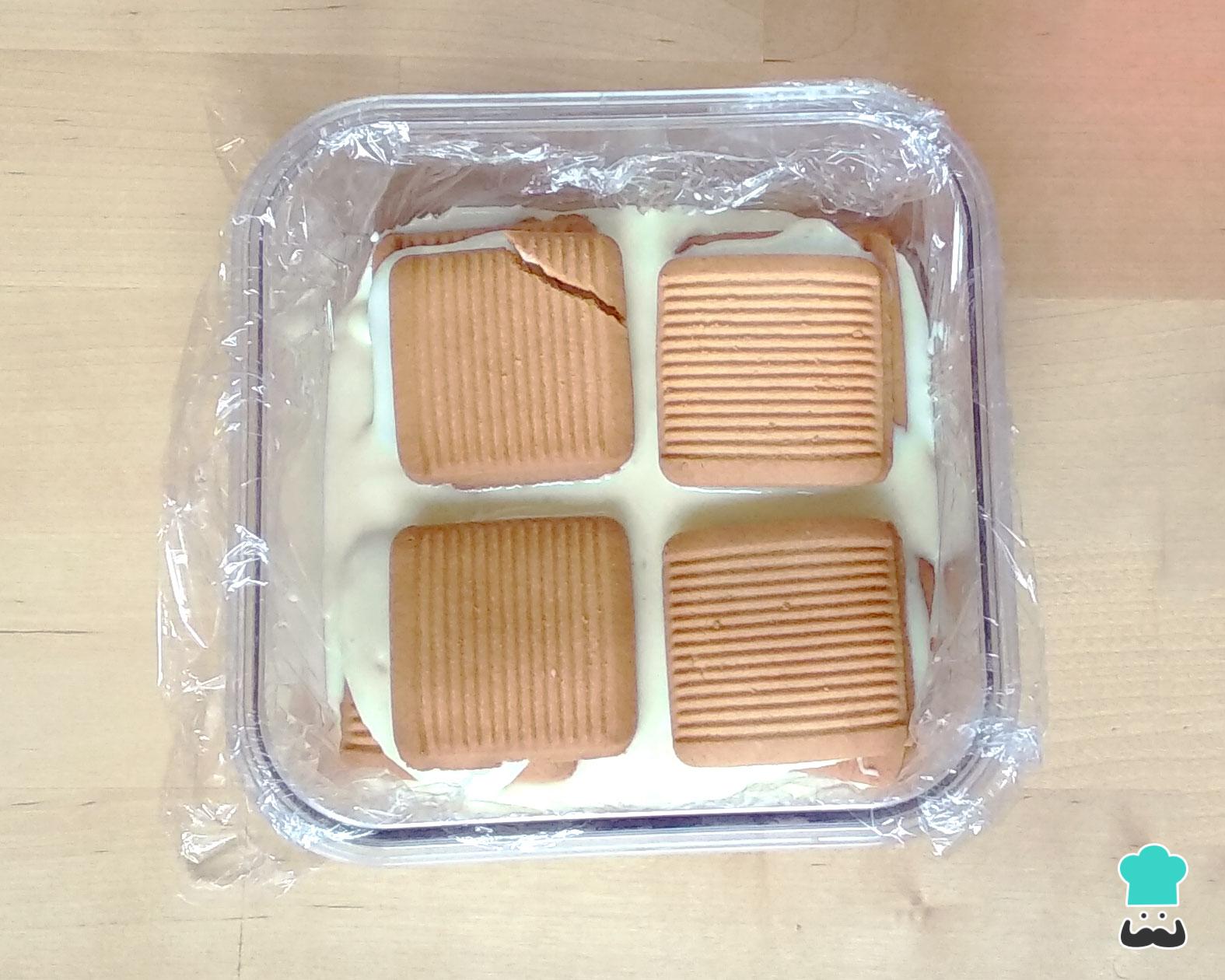 Monte seu biscoito gelado colocando uma camada do leite condensado batido , depois uma camada de biscoito, outra camada de leite condensado batido e assim sucessivamente até esgotar estes ingredientes. Reserve no freezer por 30 minutos.