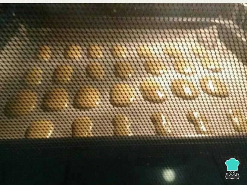 Quando o forno estiver bem quente coloque o tabuleiro nele e deixe assar por 10-12 minutos, ou até observar que os biscoitos estão dourados nas laterais. Retire e deixe esfriar sobre uma grelha.