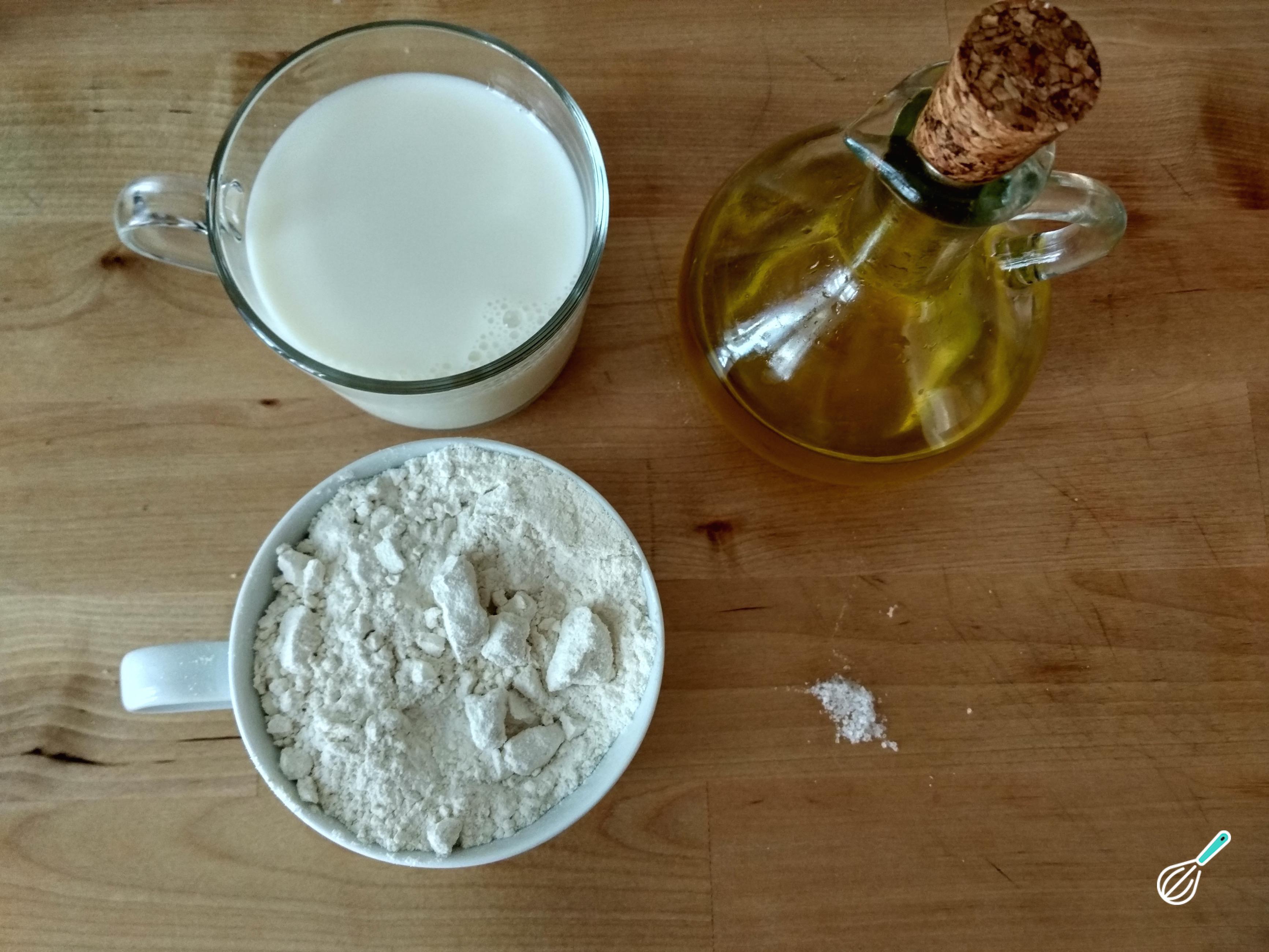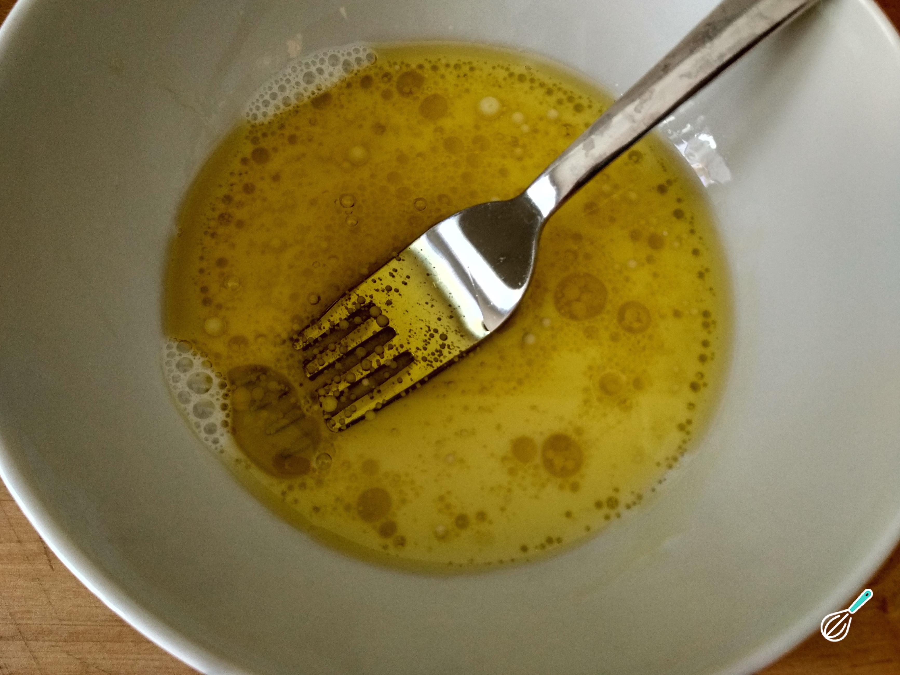 De seguida misture o leite e o azeite usando um garfo, um fouet ou uma batedeira.