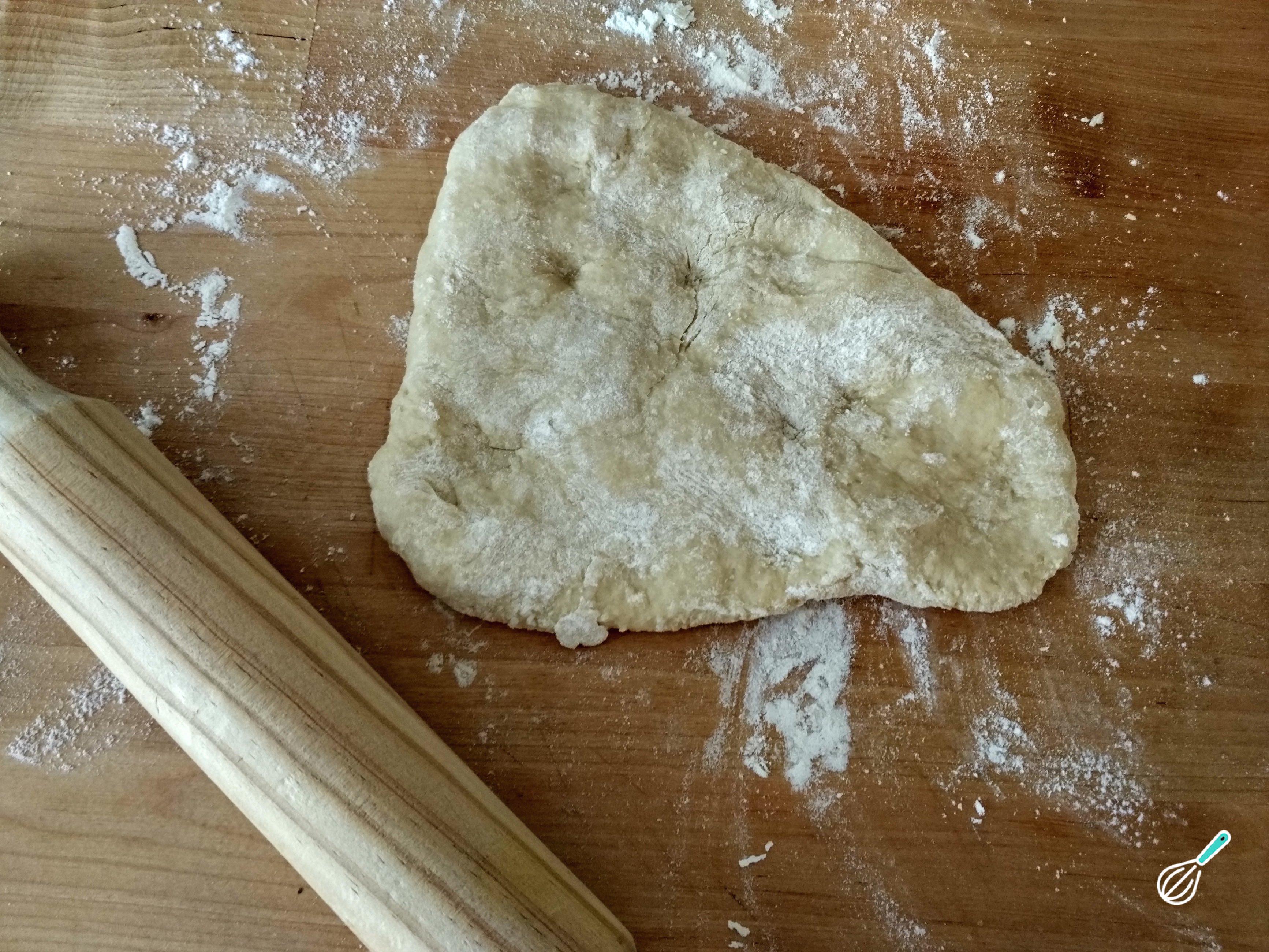 Sove bem a massa para que fique lisa e desgrudando. Depois coloque em uma bancada de trabalho enfarinhada e abra com um rolo.