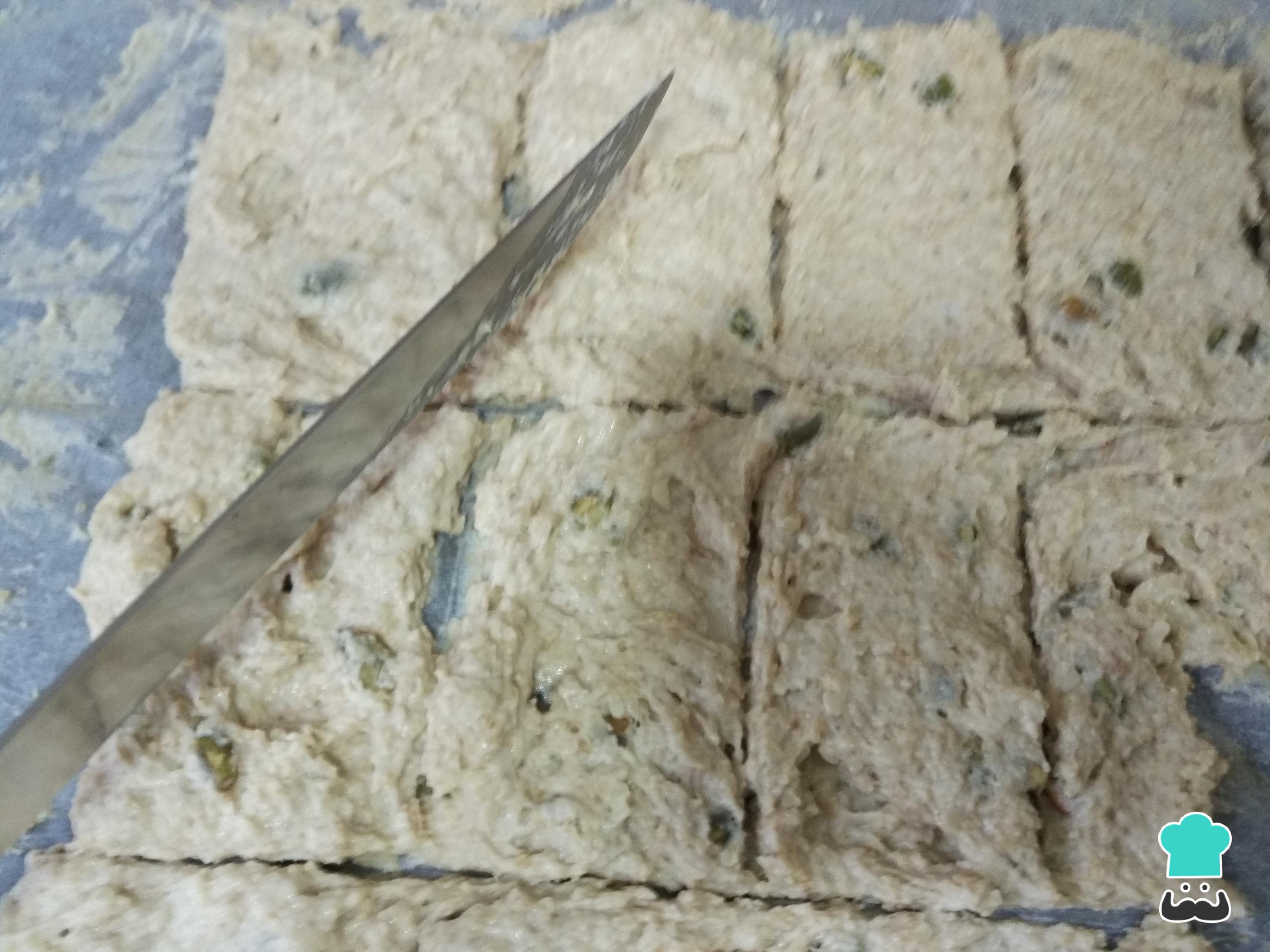 Antes de levar ao forno, corte a massa no formato que preferir, já que assim será mais fácil separar os biscoitos. Leve a assar no forno preaquecido a 180ºC por 12-15 minutos, ou até que estejam dourados e crocantes.