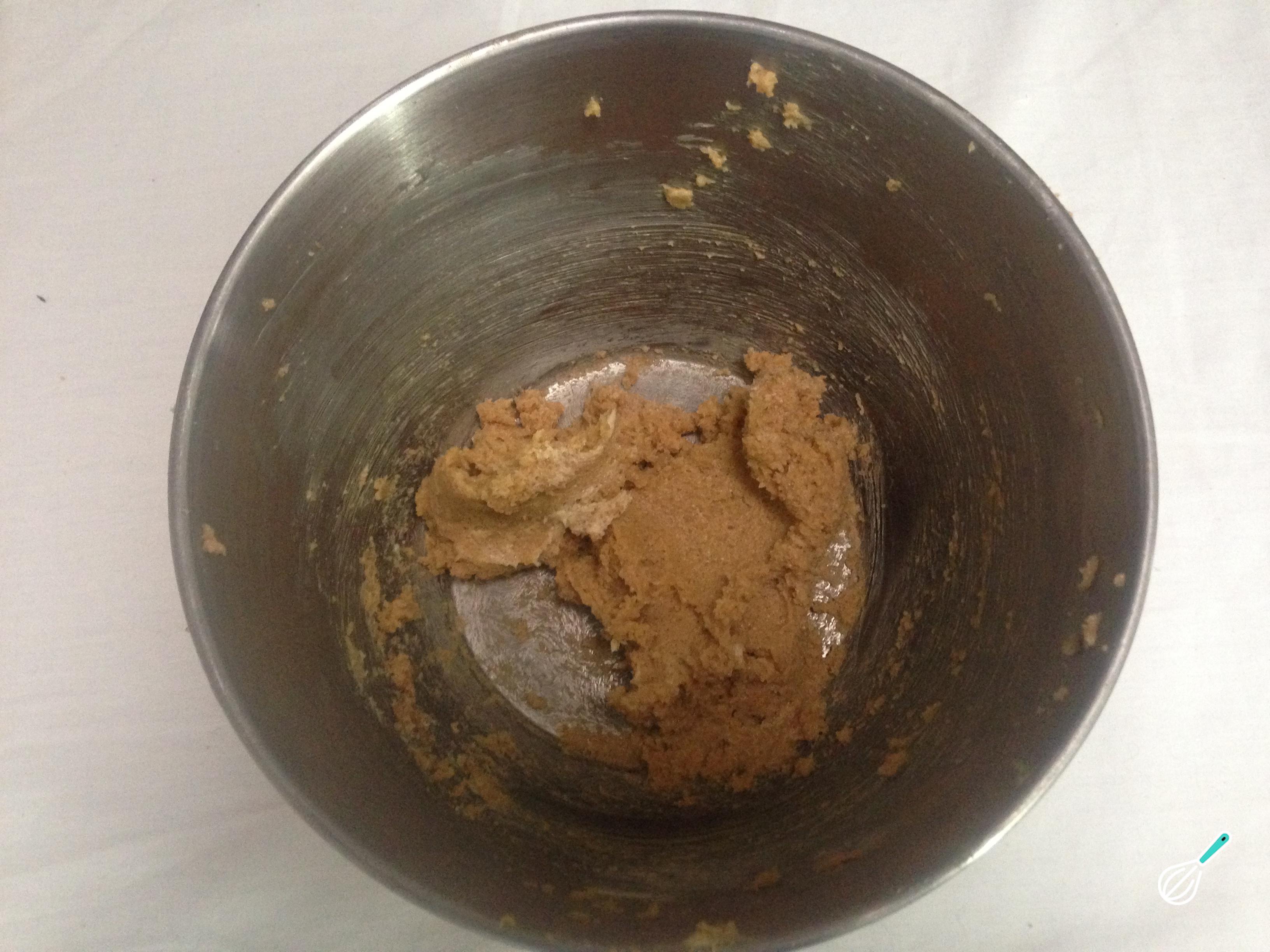 Bata a manteiga com os dois tipos de açúcar até obter uma mistura cremosa.