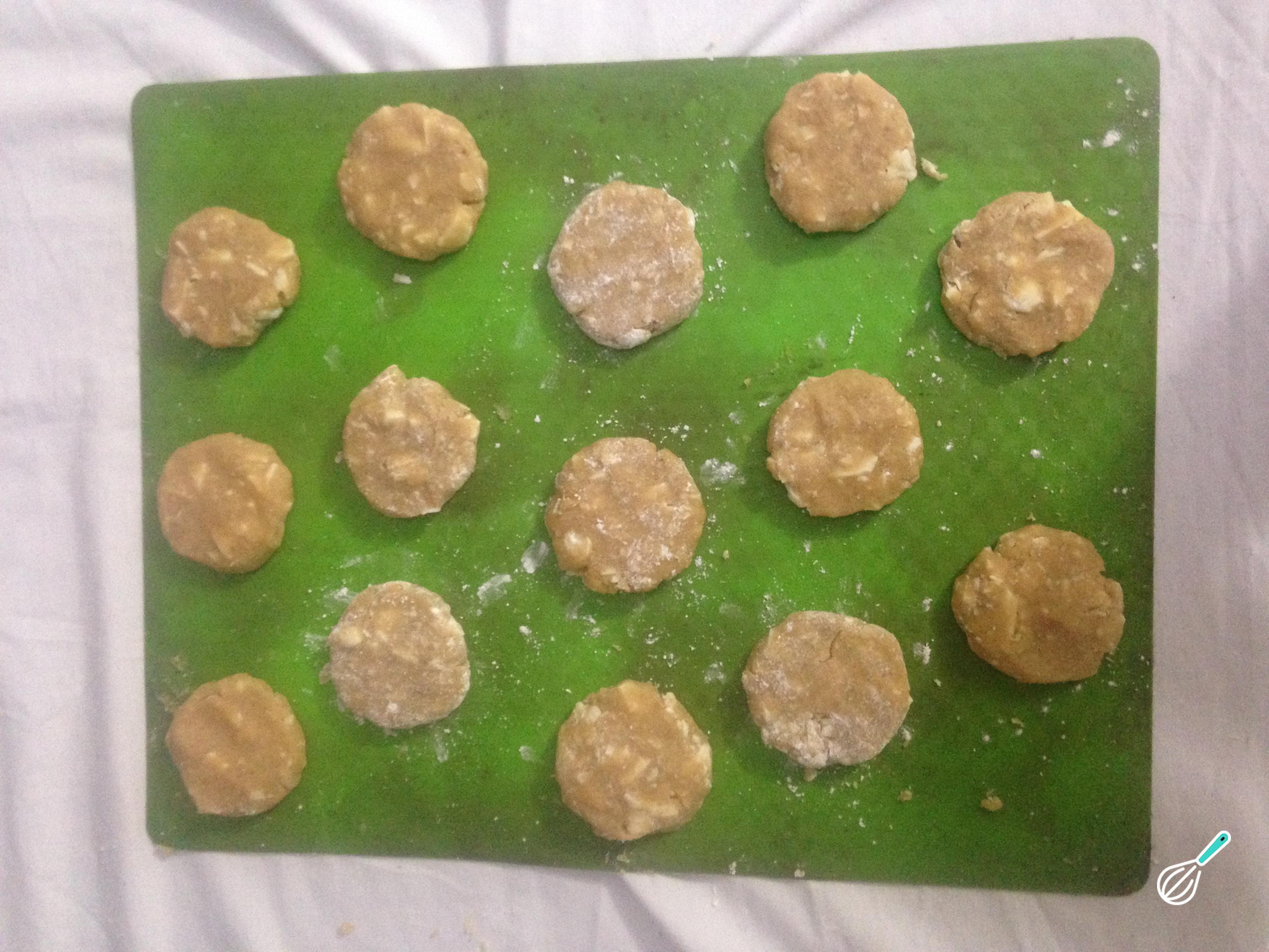 Modele biscoitos com o tamanho desejado e coloque-os em um tapete ou tabuleiro de forno forrado com papel manteiga. Leve a assar a 170ºC durante 15 minutos ou até que estejam dourados.