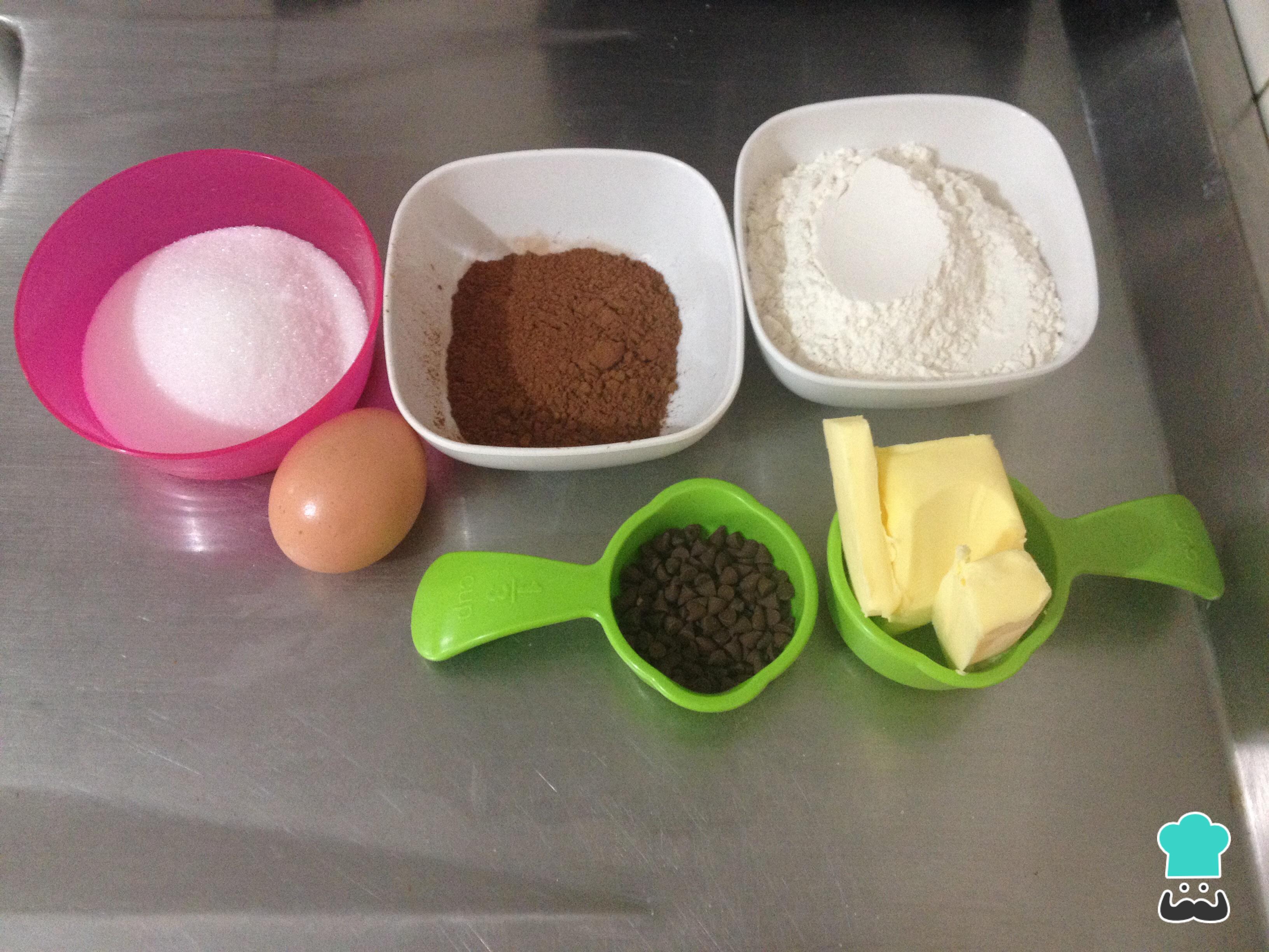 Prepare todos os ingredientes desta receita de biscoitos de manteiga e cacau crocantes.