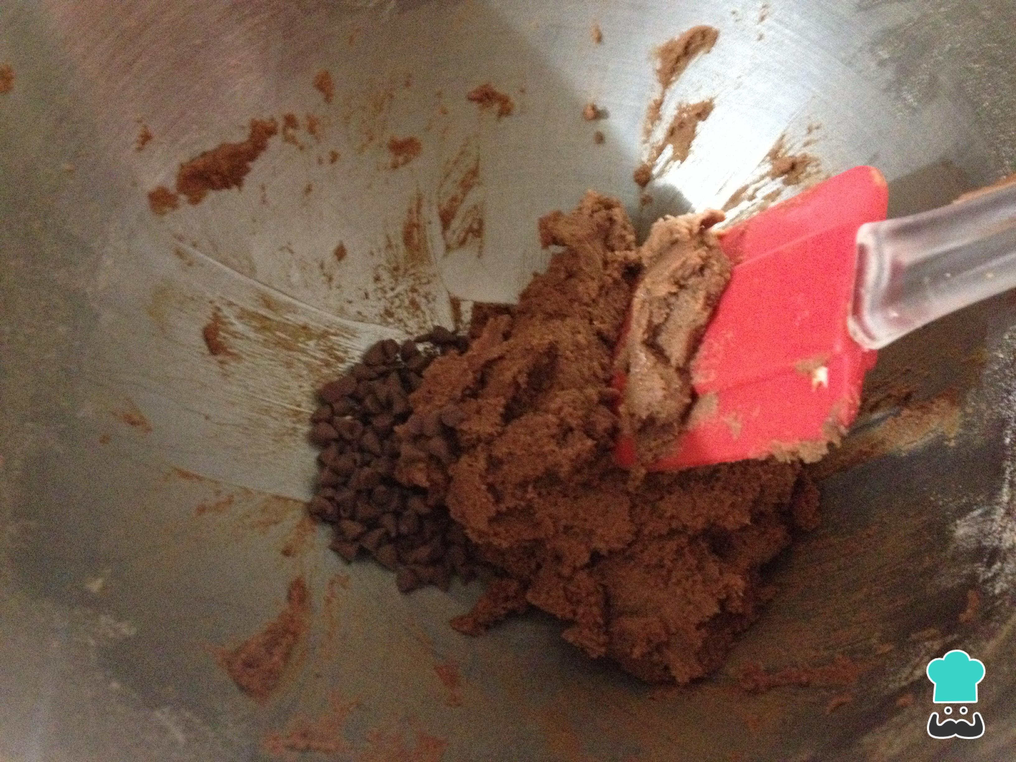 Por fim, adicione as pepitas de chocolate e misture tudo muito bem. Elas darão um toque surpresa e gostoso a estes biscoitos de manteiga e cacau crocantes!