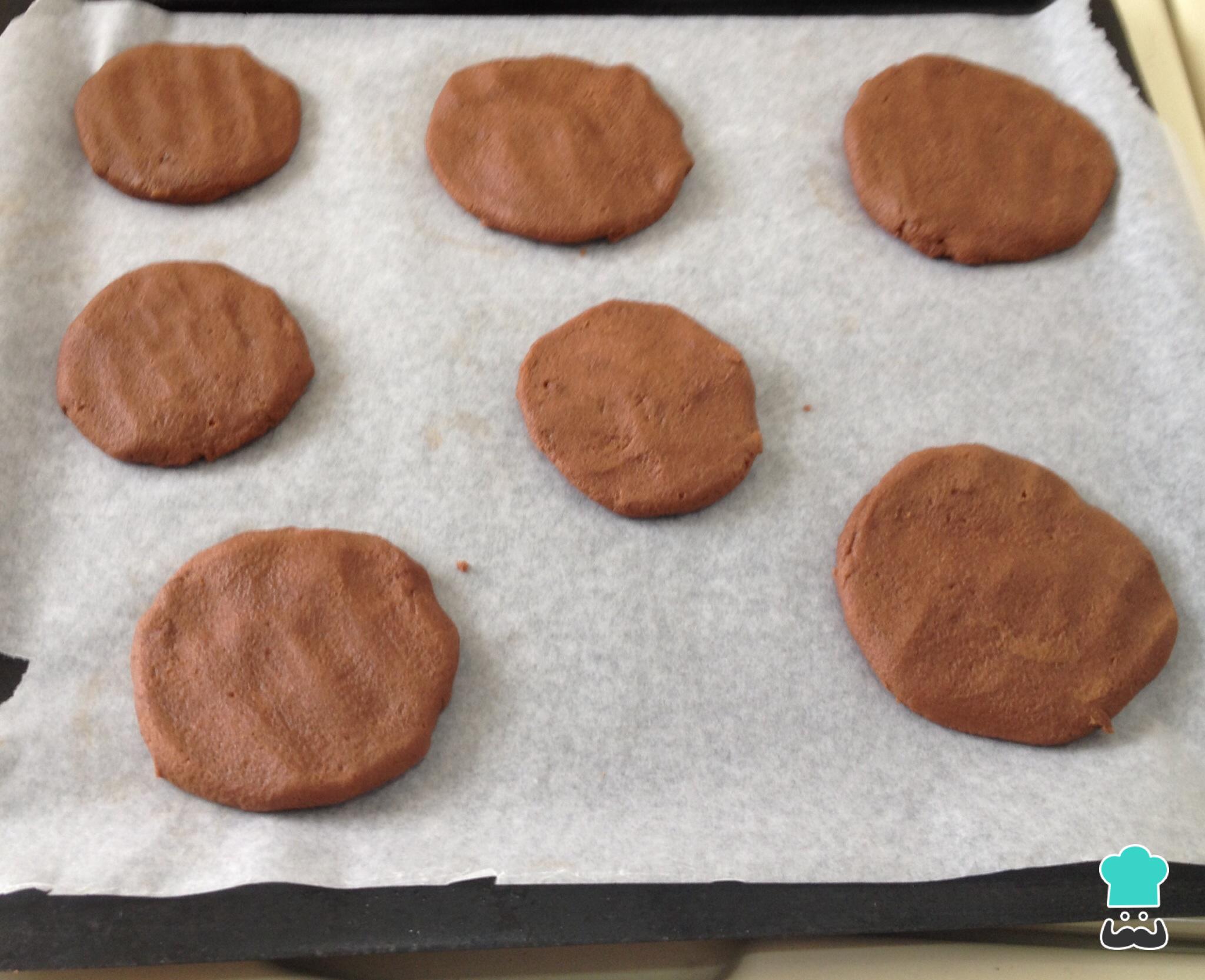 Modele biscoitos de tamanho médio e espalme-os um pouco. Leve a assar ao forno preaquecido a 180ºC, numa bandeja forrada com papel manteiga, durante 15 minutos.