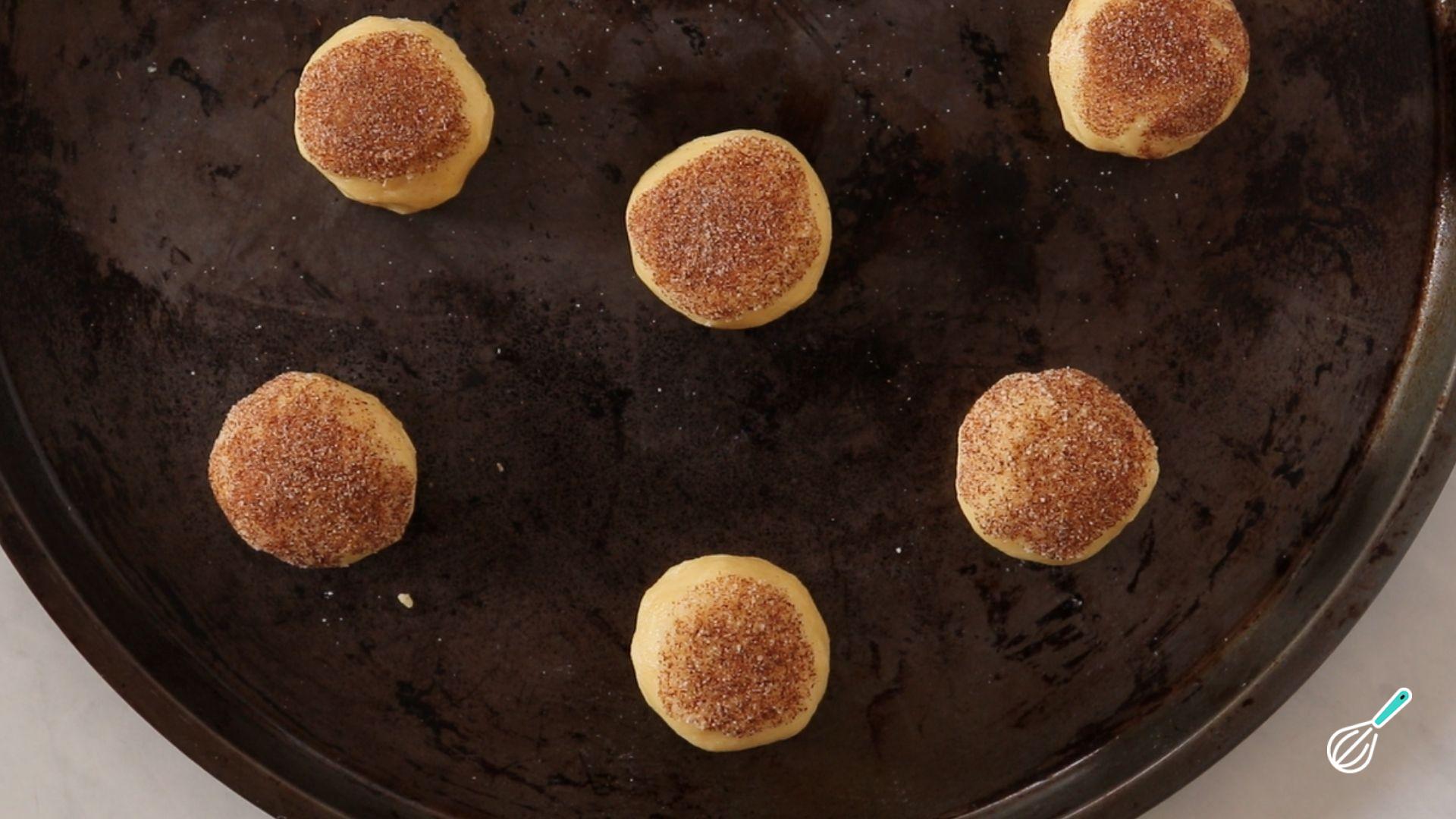 Dica: o bicarbonato de sódio é um ingrediente muito comum nas receitas de biscoito snickerdoodle, para além do cremor tártaro (cream of tartar), que confere um gostinho levemente ácido na massa.