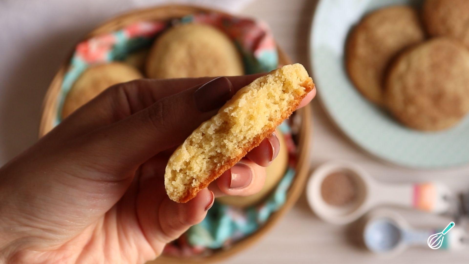 A massa do snickerdoodle é super fácil de fazer e o resultado é um biscoito macio e fofinho por dentro, como um bolinho doce achatado. Na cobertura leva canela e açúcar, dois dos ingredientes principais do biscoito snickerdoodle original, que deixam a receita irresistível e perfeita para o café da tarde!