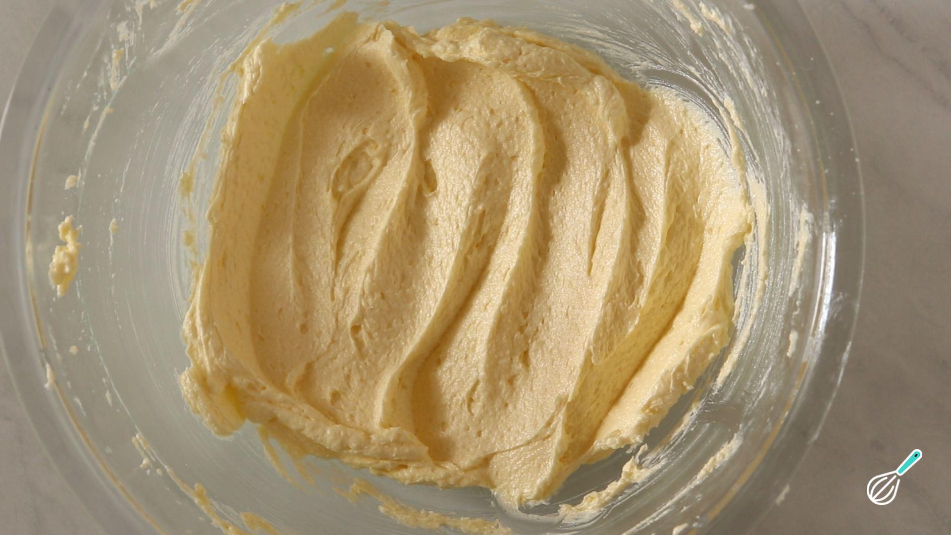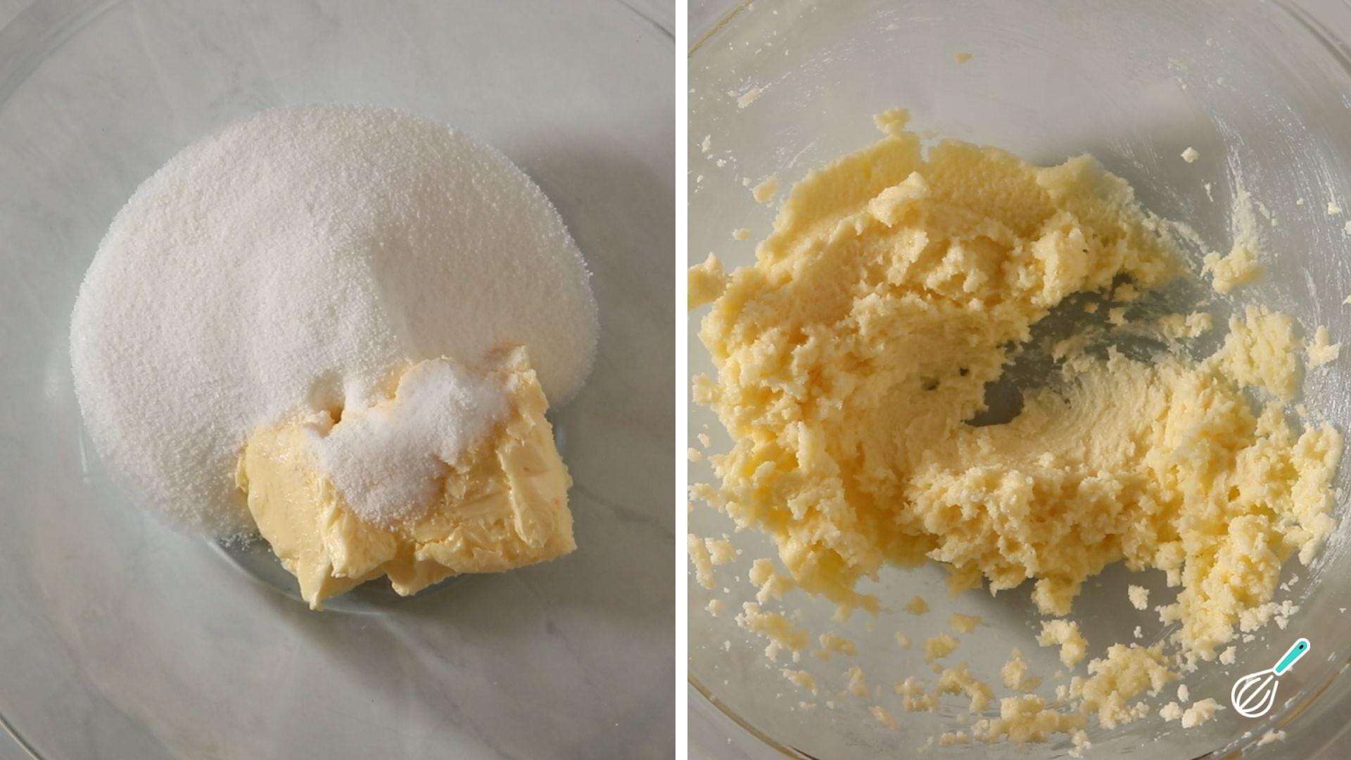 Bata na batedeira a manteiga e o açúcar até obter uma pasta cremosa.