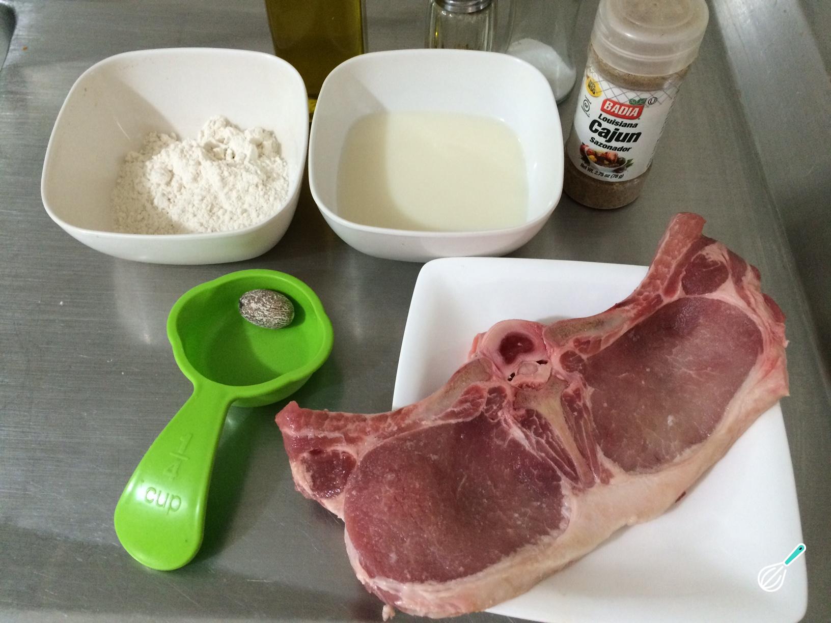Antes de fazer esta receita de bisteca de porco, o primeiro passo é juntar todos os ingredientes.