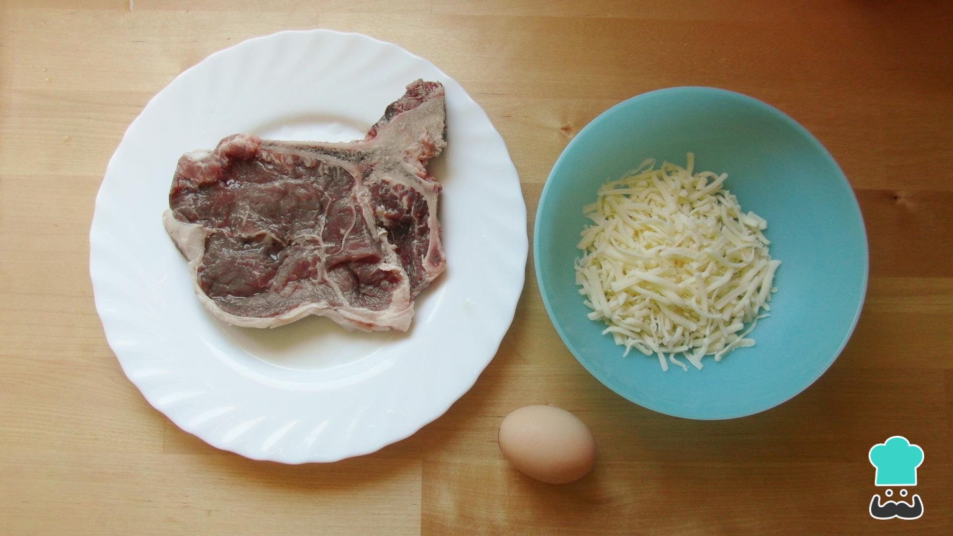 Para preparar a bisteca com queijo comece por reunir os ingredientes.