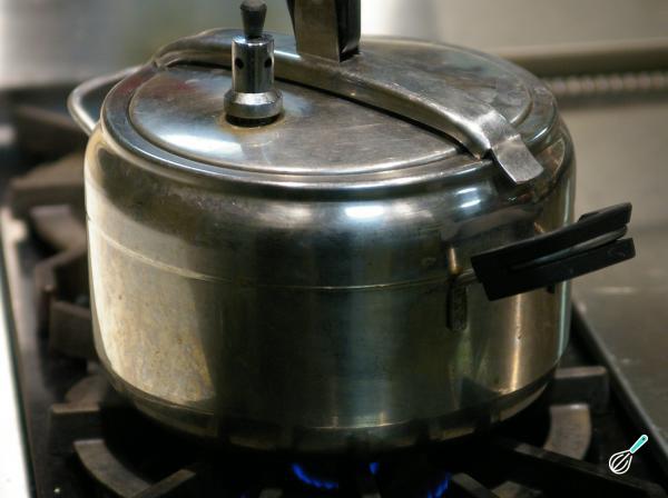 Feche a panela de pressão e depois de levantar fervura, deixe cozinhar por 15 minutos.