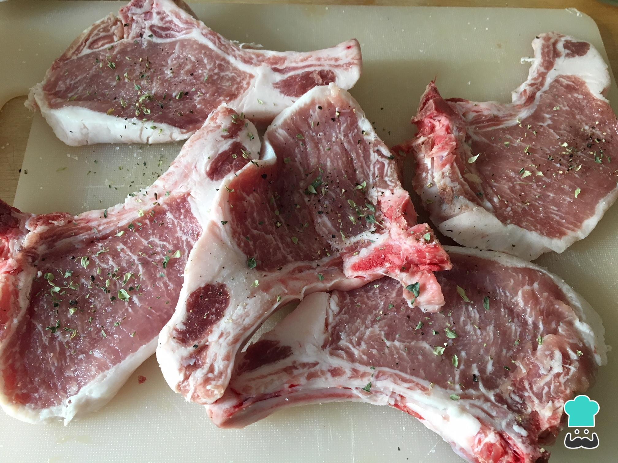 Junte os ingredientes necessários ao preparo desta receita de bisteca, já pesados e separados.