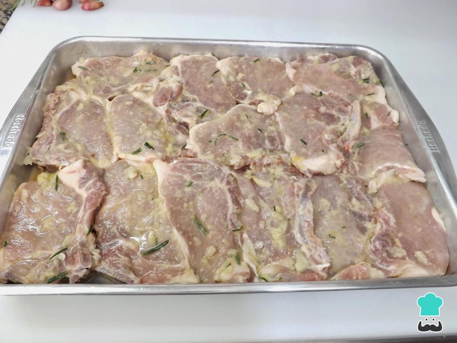 Dica: Na segunda vez que vai o forno, a bisteca de porco assada deve estar descoberta!