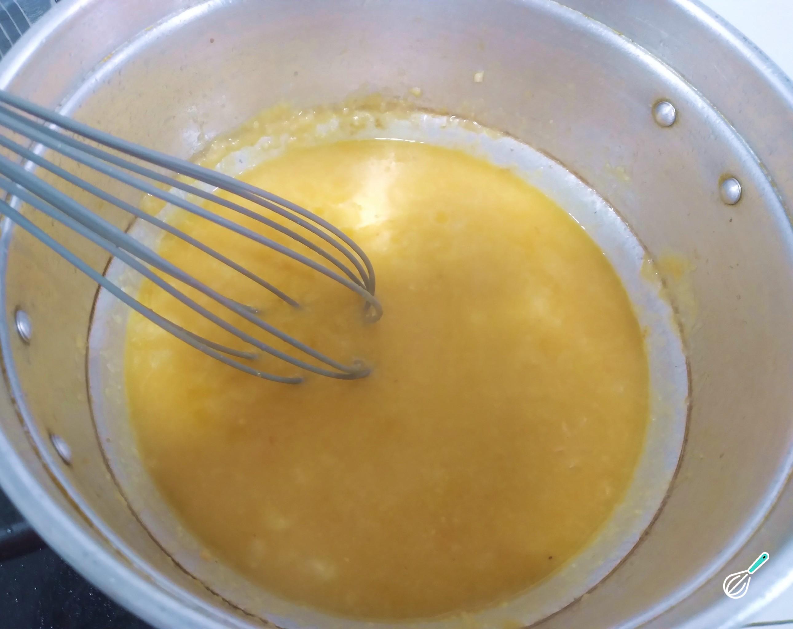 Dica: Nessa etapa é necessário usar o fouet, para não empelotar o creme. A farinha de arroz pode ser substituída pela farinha de trigo normal