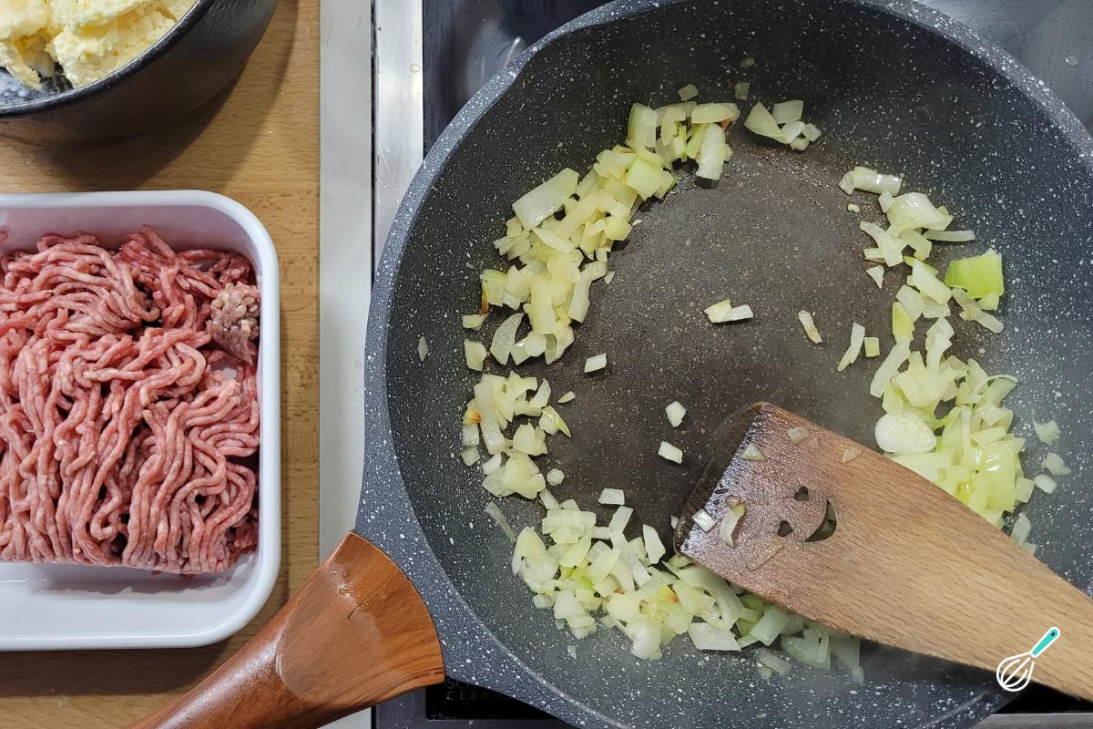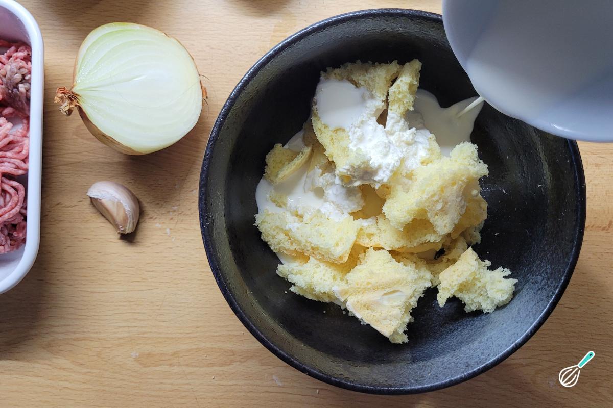Cubra com o leite e deixe o pão amolecer enquanto faz o restante do recheio.