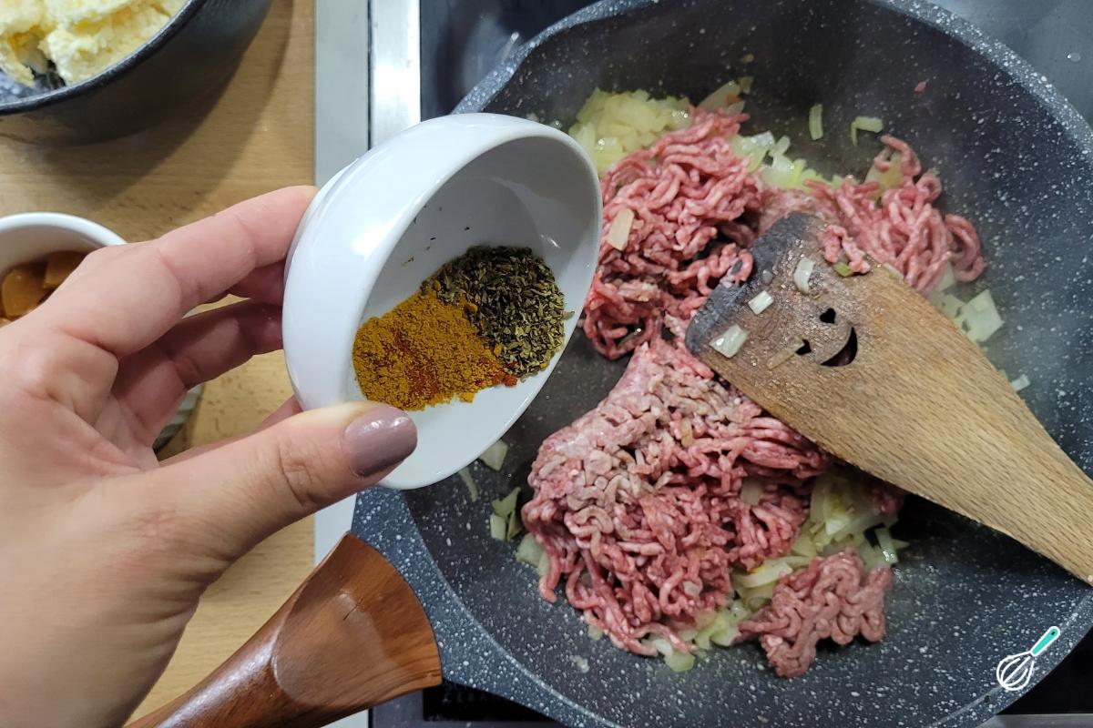 Tempere com sal e pimenta do reino a gosto e misture bem.