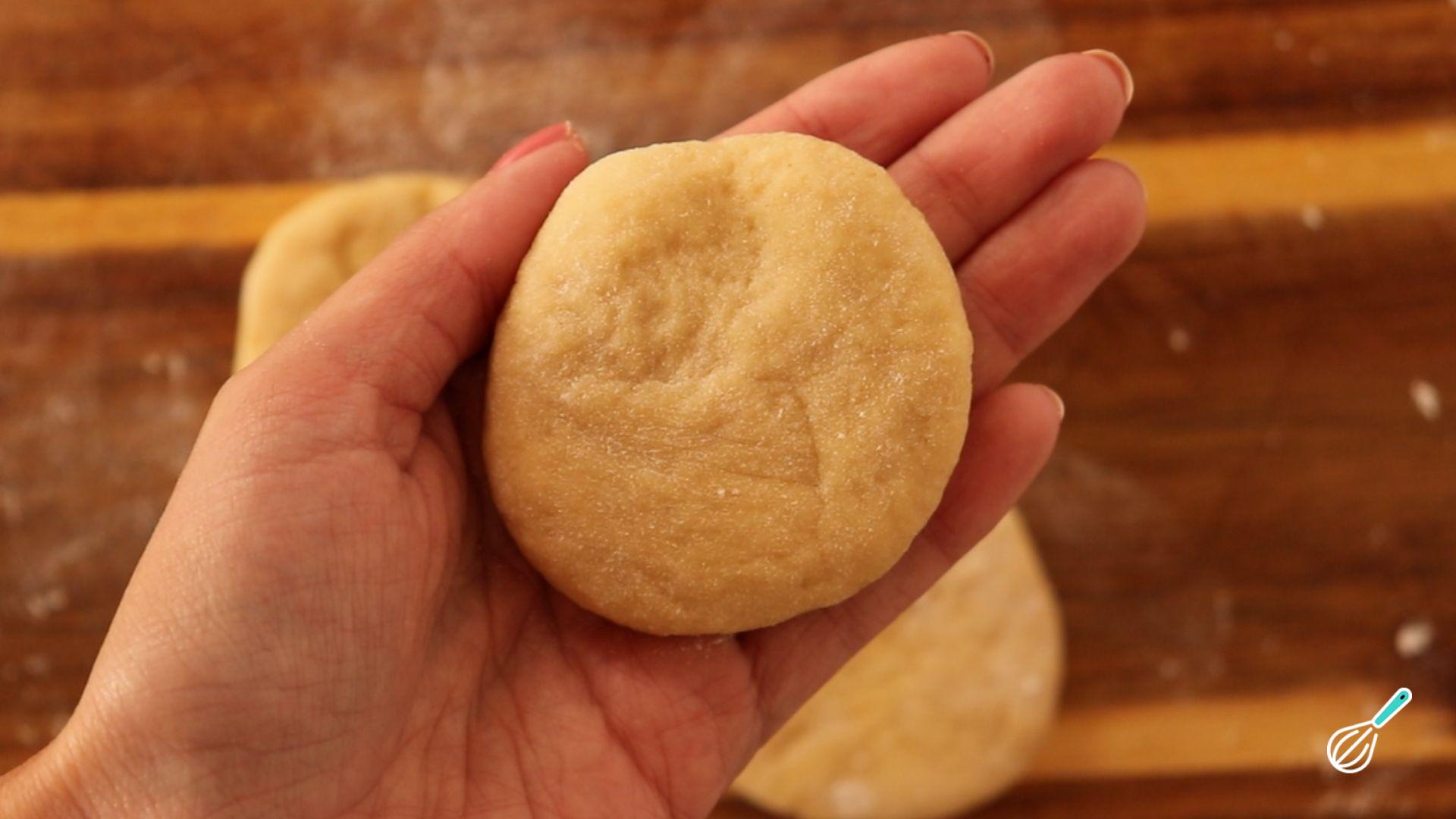 Passado esse tempo, abra a massa e corte no tamanho que desejar (essa receita rende 12 bolas de Berlim com mais ou menos 8 cm de diâmetro).
