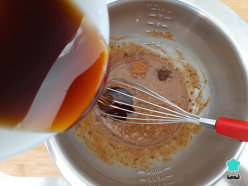 Depois de misturar bem, adicione o mel, as especiarias e o chocolate em pó.