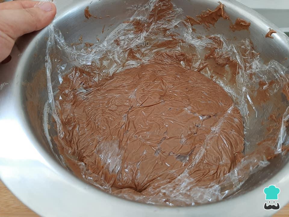 Cubra a massa com um filme plástico e leve à geladeira para firmar um pouco mais, entre 30 minutos e 1 hora.