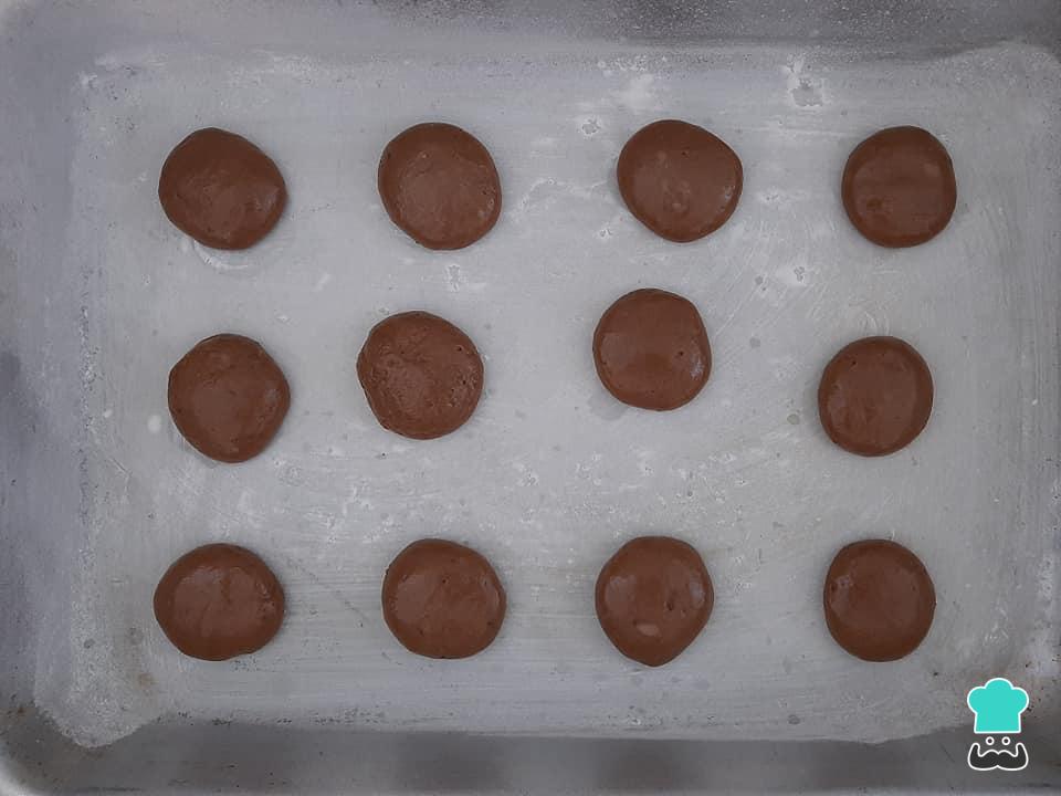 Acomode-as numa forma untada e enfarinhada, deixando espaço entre elas, pois irão crescer e se espalhar para as laterais. Leve para assar em forno pré aquecido a 180 graus por aproximadamente 20 minutos. As bolachas ficarão mais firmes e coradas levemente na base.