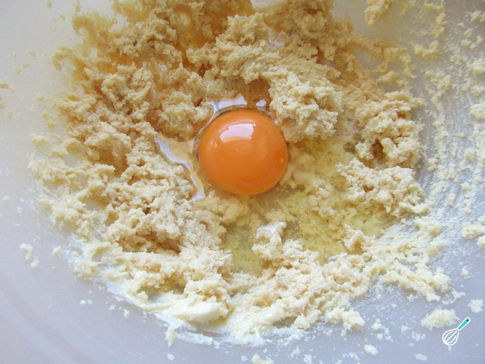 Em seguida, com a ajuda da batedeira elétrica, bata a manteiga e o açúcar até ficar cremoso. Acrescente o ovo e volte a bater.