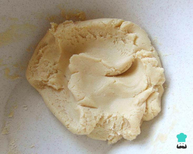 Modele a massa em forma de bola, coloque num bowl e cubra com plástico filme. Reserve na geladeira por 20-30 minutos, para melhorar a consistência. Ligue o forno nos 180ºC.