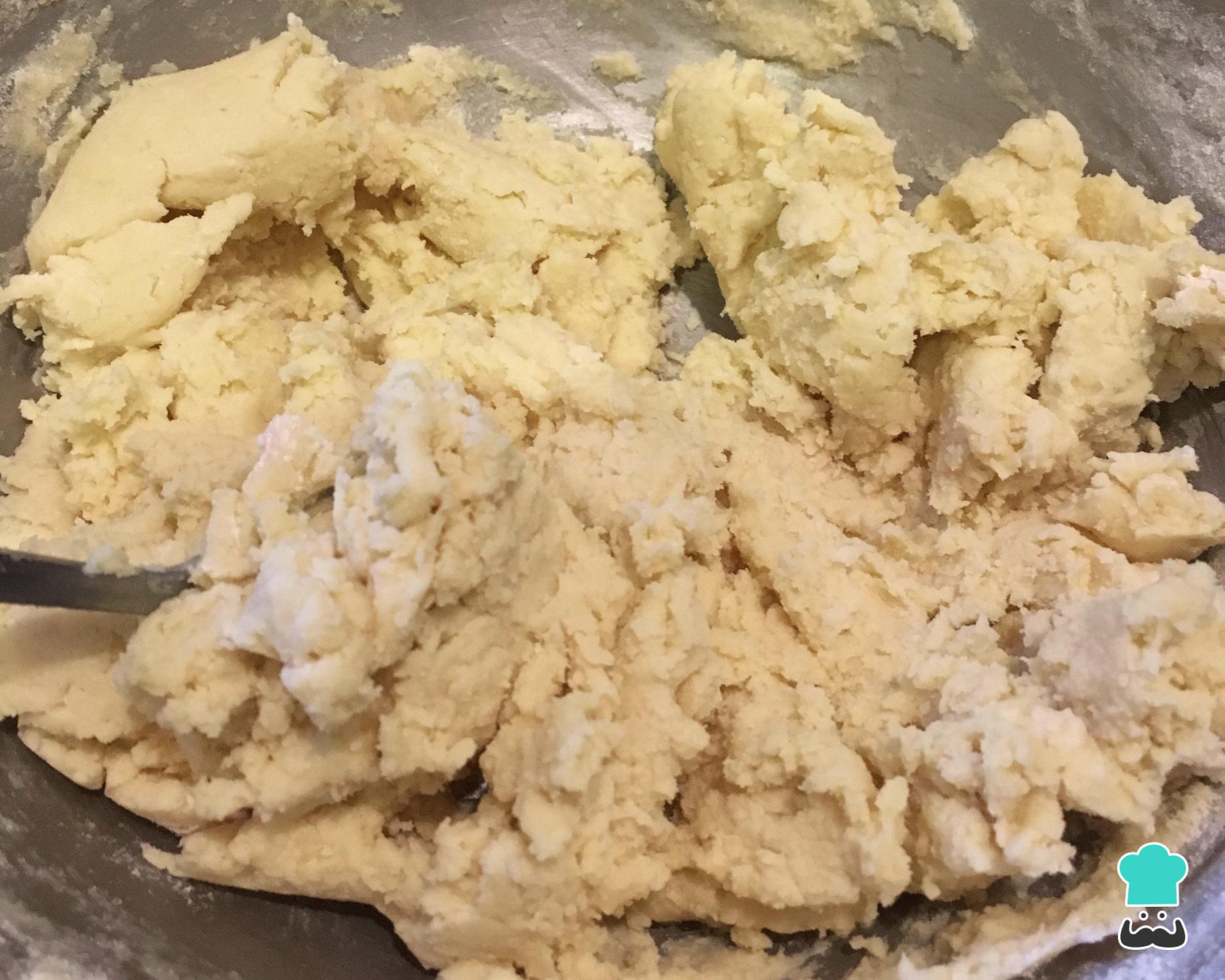Coloque todos os ingredientes numa tigela: o polvilho, a maisena, a nata, o leite condensado, os ovos, o fermento e, se quiser, a essência de baunilha também. Misture com as mãos ou com a batedeira até obter uma massa de bolacha macia e fácil de modelar.