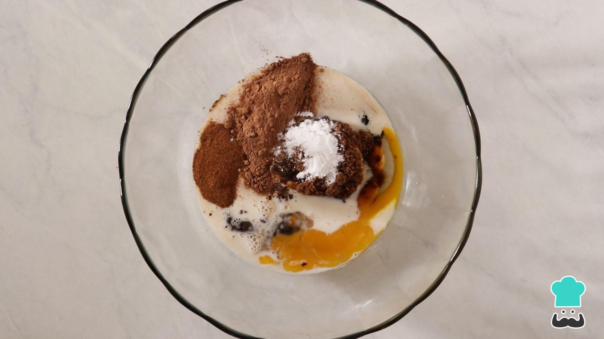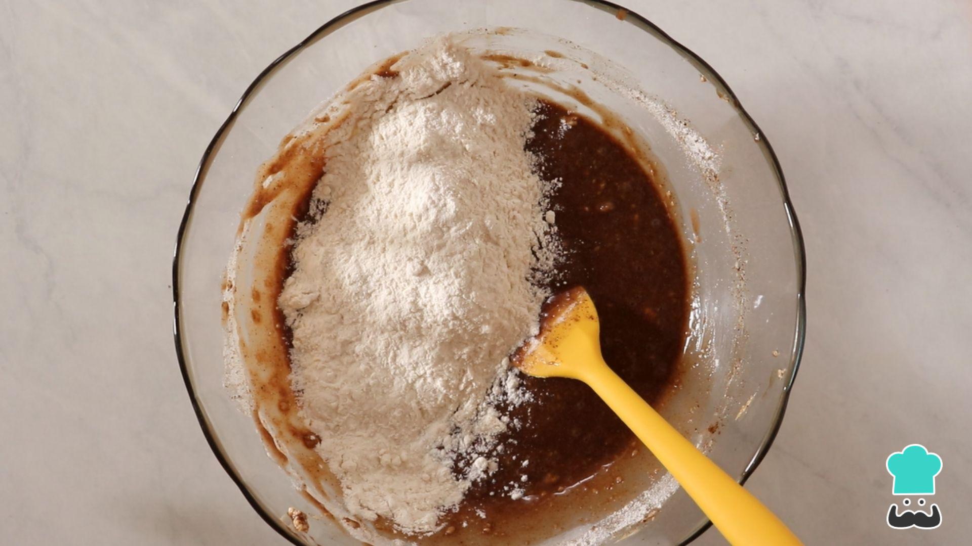 Comece misturando em uma tigela todos os ingredientes exceto a farinha de trigo.