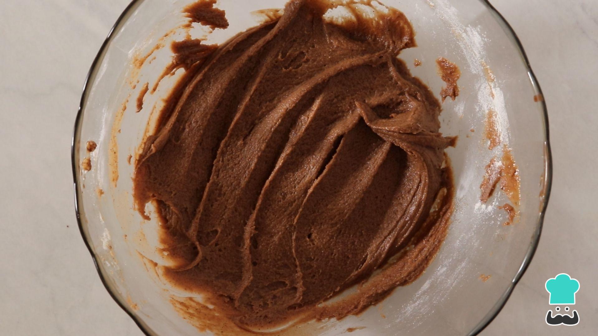 Misture até virar uma massa mais densa que uma massa de bolo, como na foto abaixo.