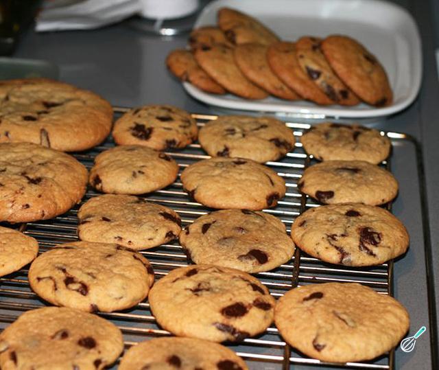 Quando estiverem prontas, deixe esfriar na assadeira por 10 minutos, aproximadamente. Em seguida, coloque-as em uma gradinha para esfriar. Fácil, né? Esta receita de bolachas Chips Ahoy é realmente simples e o resultado espetacular, as crianças adoram!