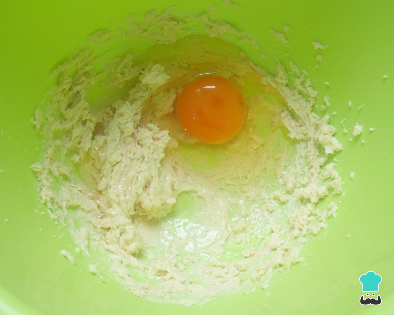 Misture a margarina com o açúcar mexendo bem. Acrescente o ovo e bata um pouco.
