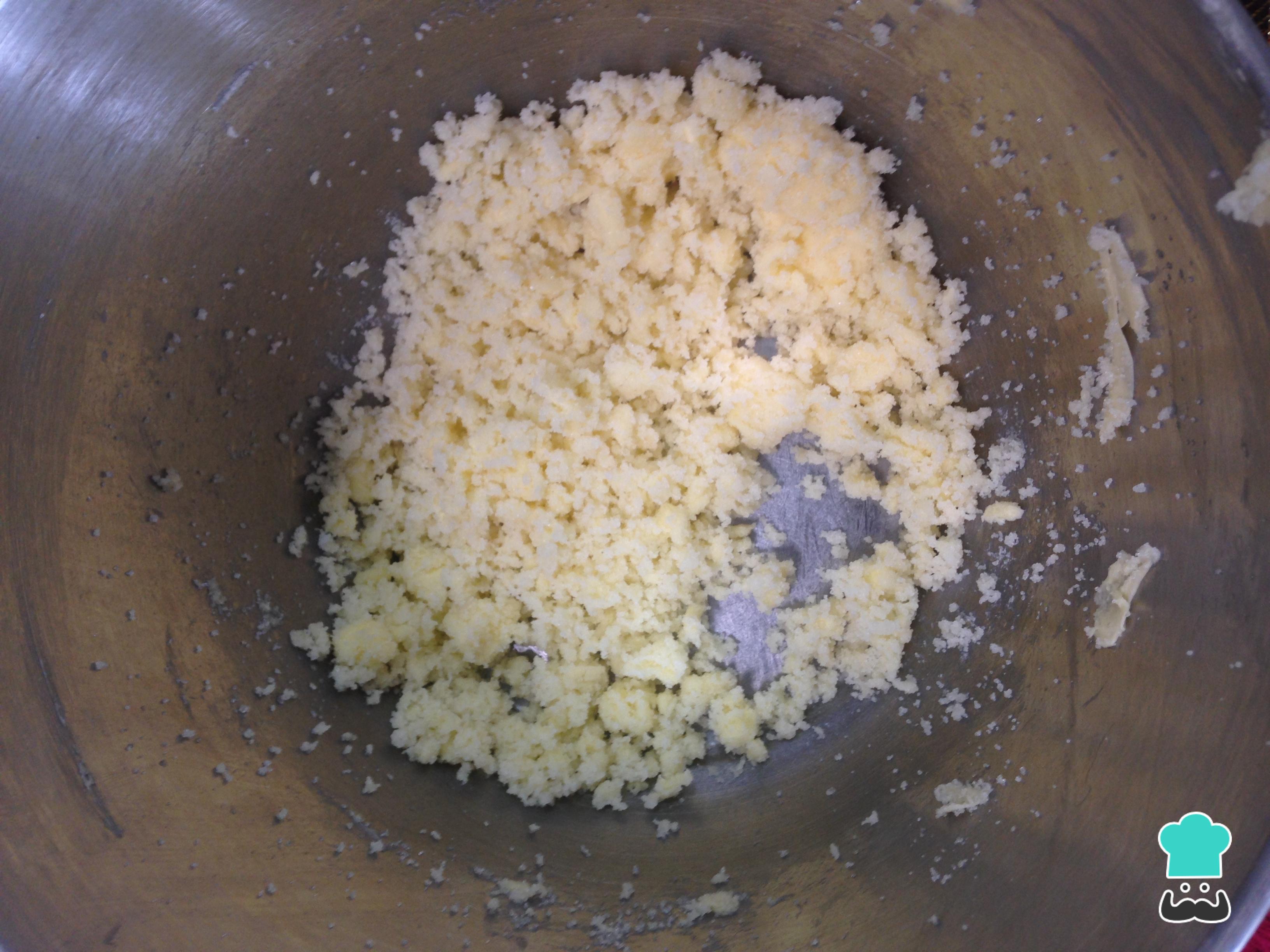 Bata a manteiga com o açúcar até obter um creme.
