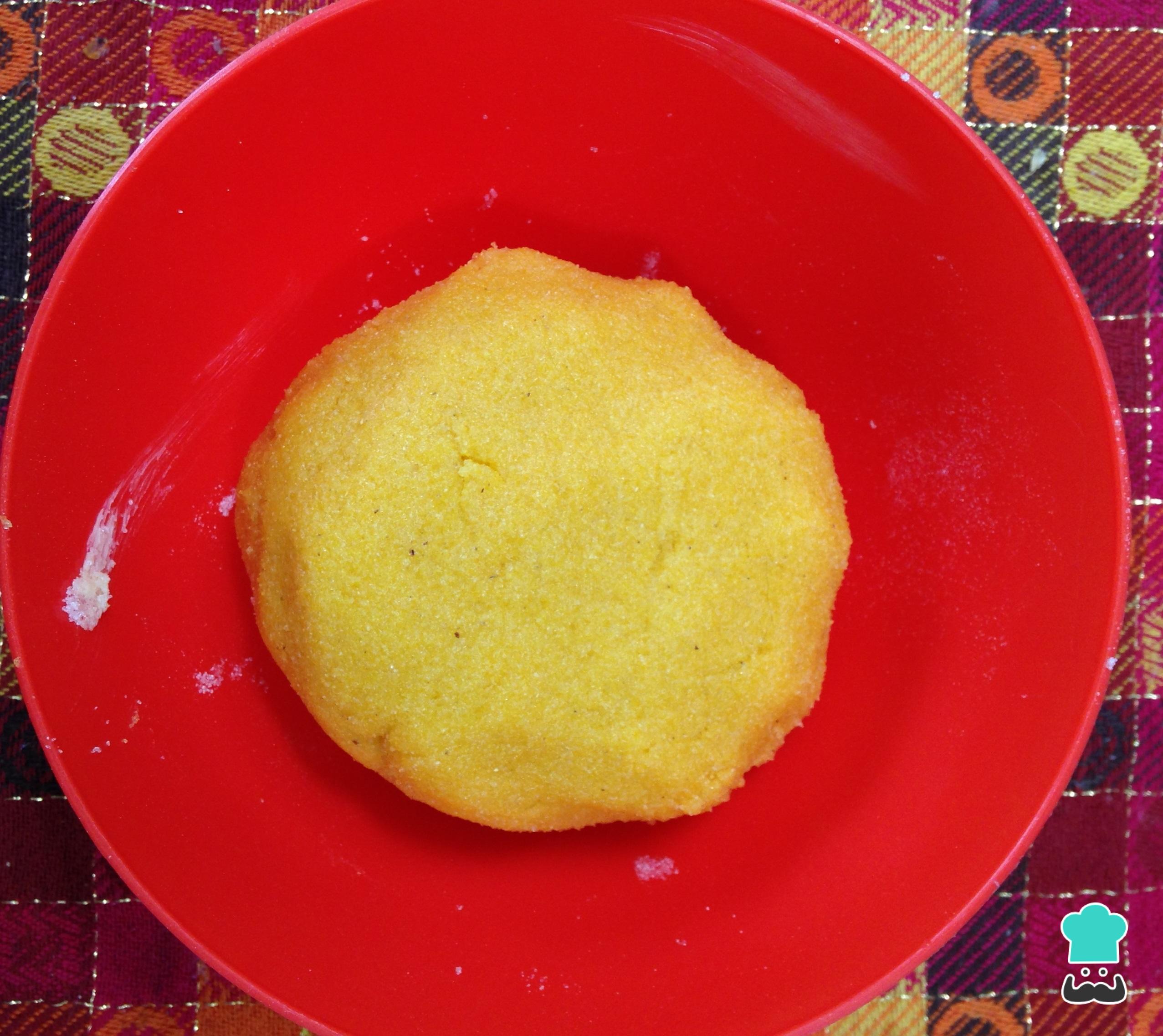 Adicione a farinha de milho e amasse com as mãos até obter uma massa compacta e homogênea, da qual irão resultar as bolachas sem glúten.