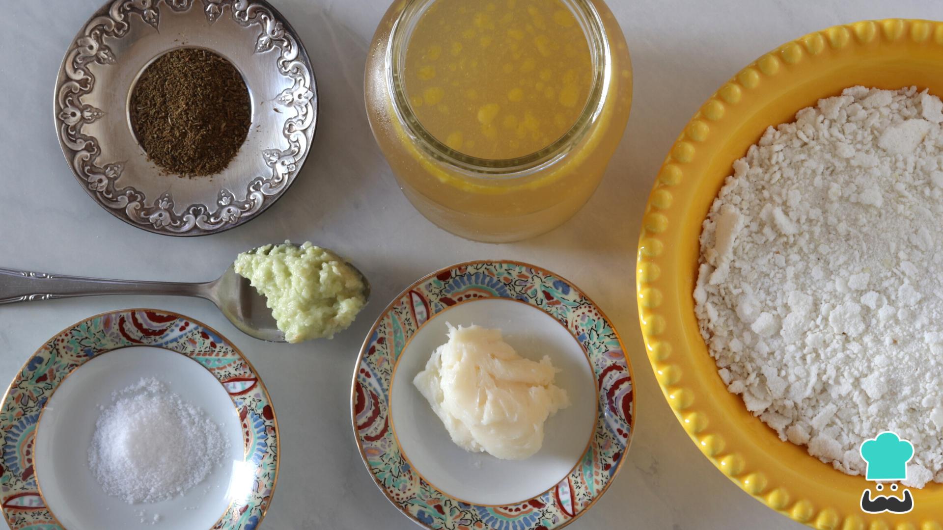 Separe os ingredientes. Se não tiver banha, refogue a cebola e o alho na manteiga. Você também pode substituir o caldo de legumes caseiro por água + 1 tablete caldo de galinha/carne ou mesmo de legumes.