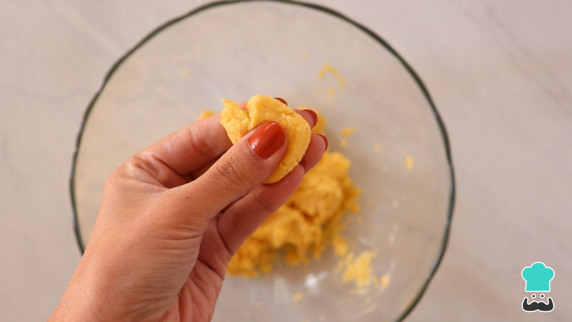 O caldo precisa ser colocado aos poucos só até dar o ponto certo da massa que é assim como na foto, sem grudar nas mãos.