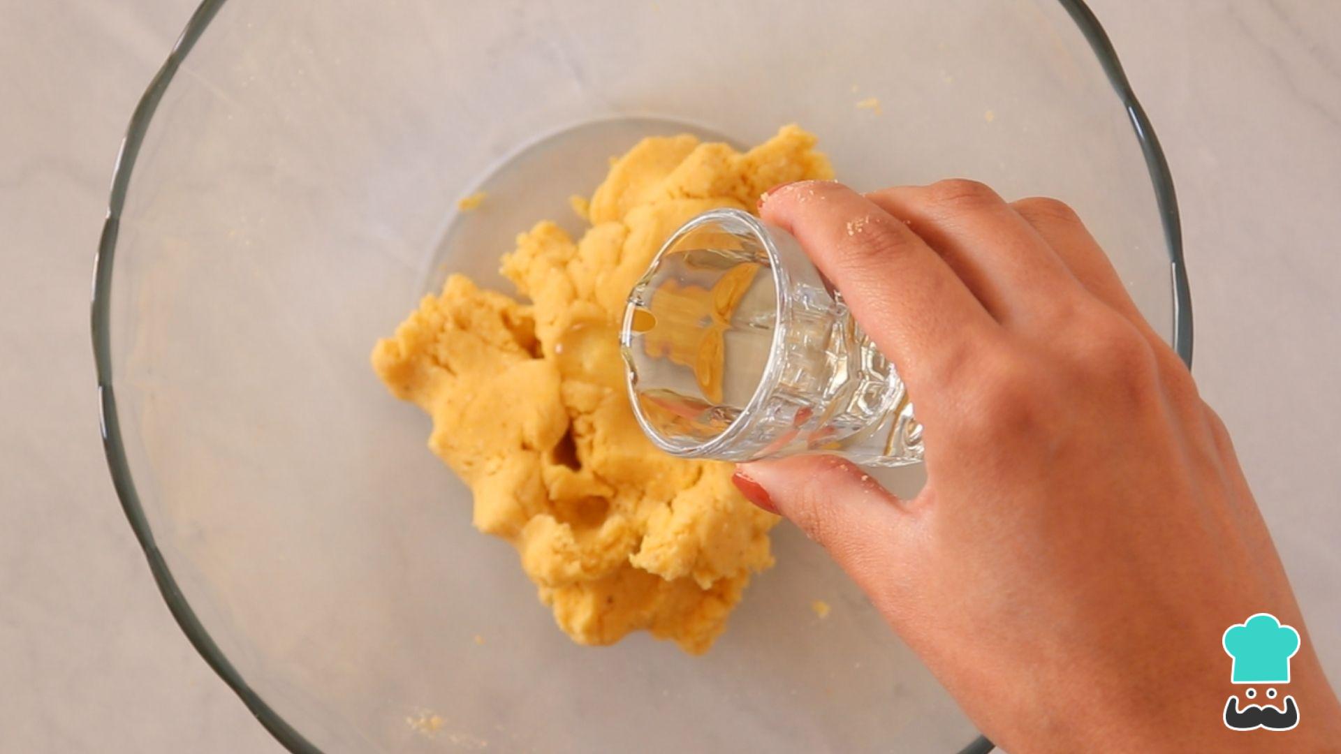 Pra finalizar, coloque o óleo e incorpore bem na massa, misturando com as mãos mesmo.