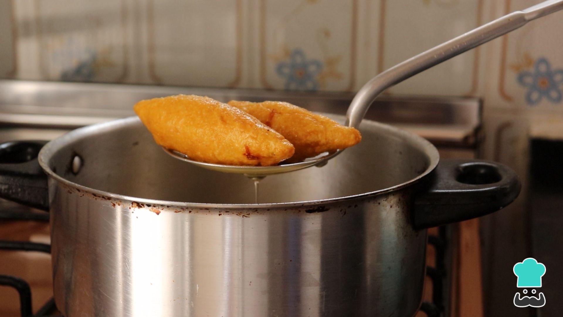 Finalmente, frite os bolinhos em óleo quente que, para obter melhores resultados, deverá estar novo e limpo. Retire para um prato com papel absorvente e deixe secar um pouco.